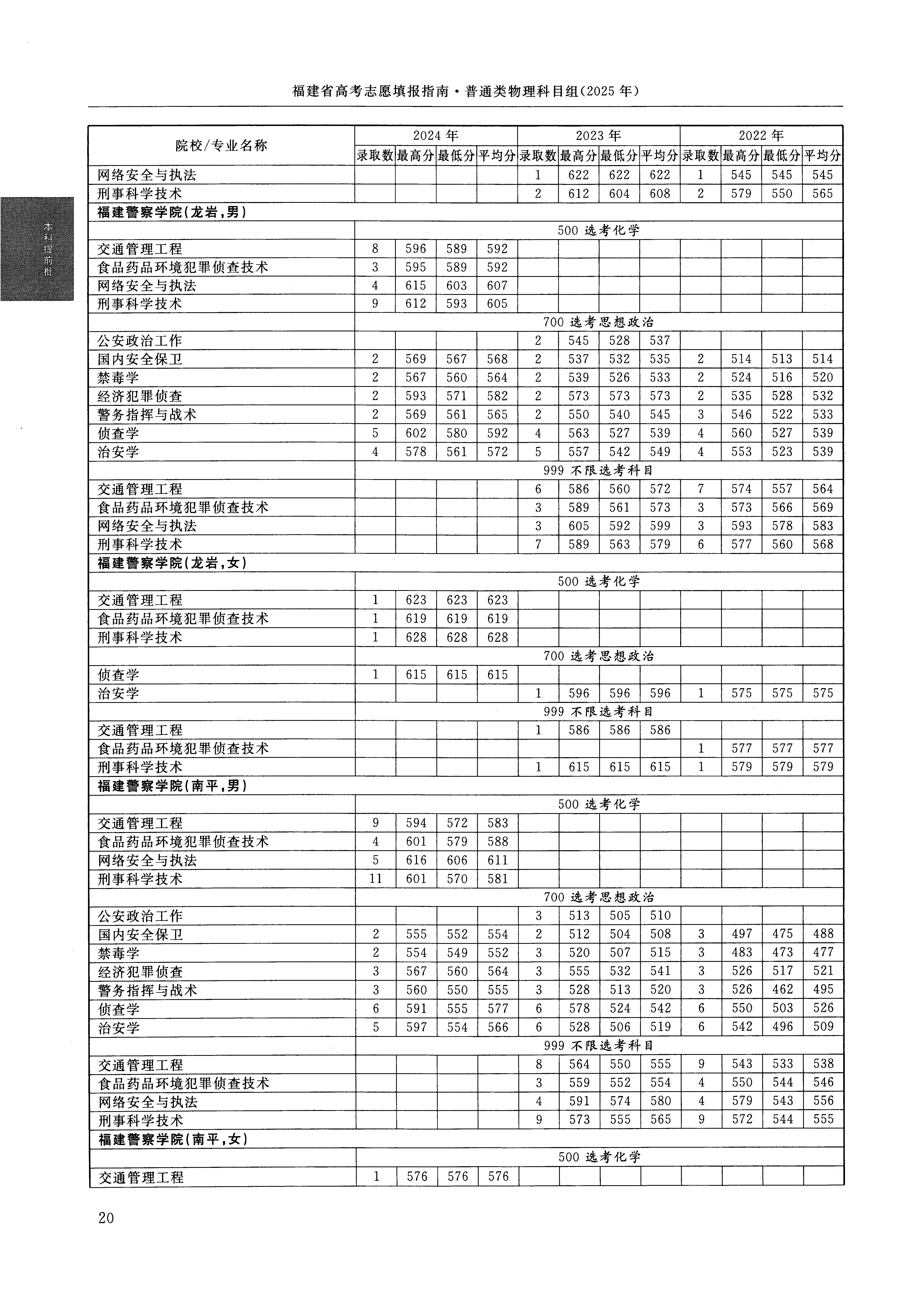 2024年福建高考普通类本科提前批 福建警察学院 的 交通管理工程 专业录取分数溯源信息