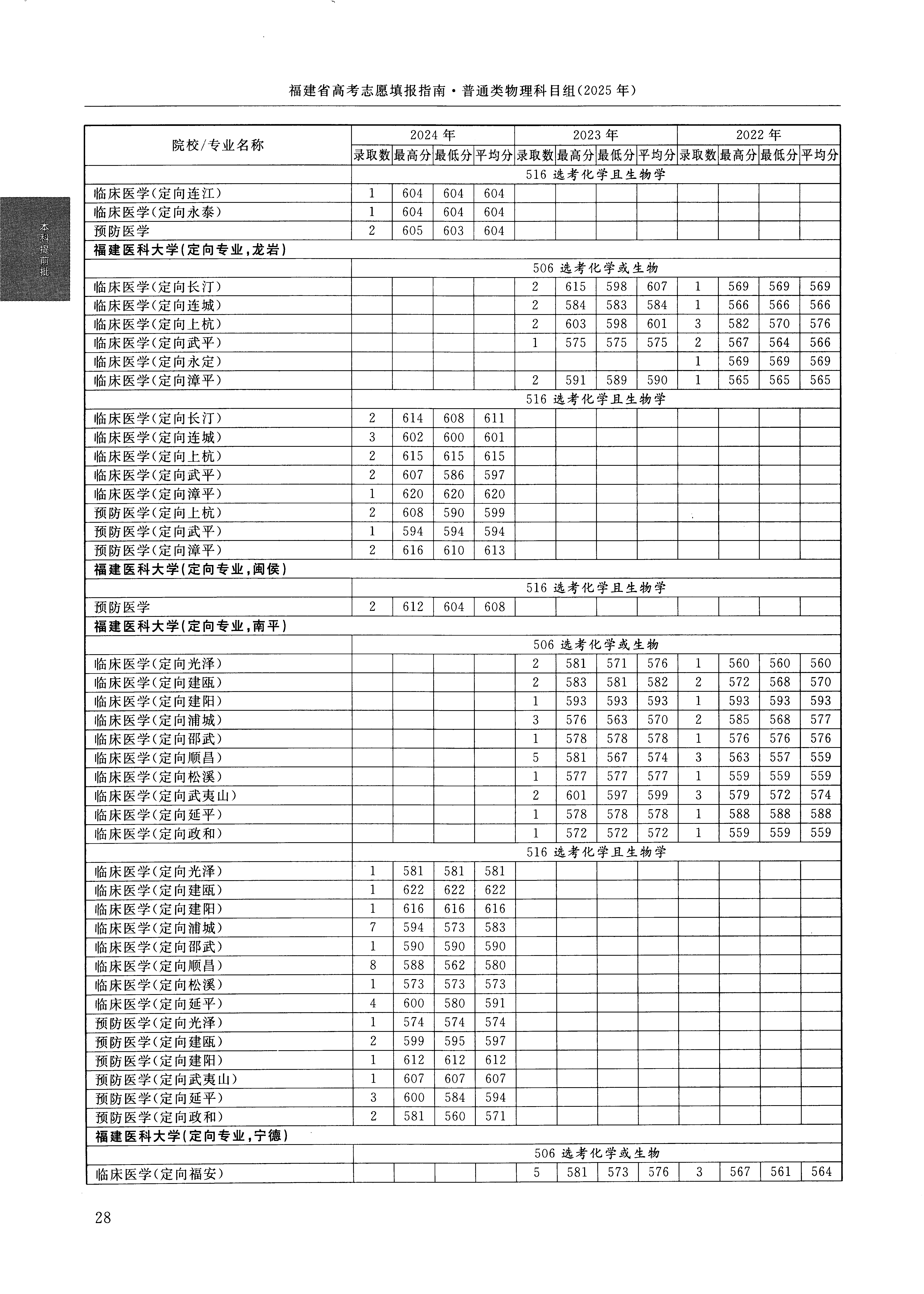 2024年福建高考普通类本科提前批 福建医科大学 的 临床医学 专业录取分数溯源信息