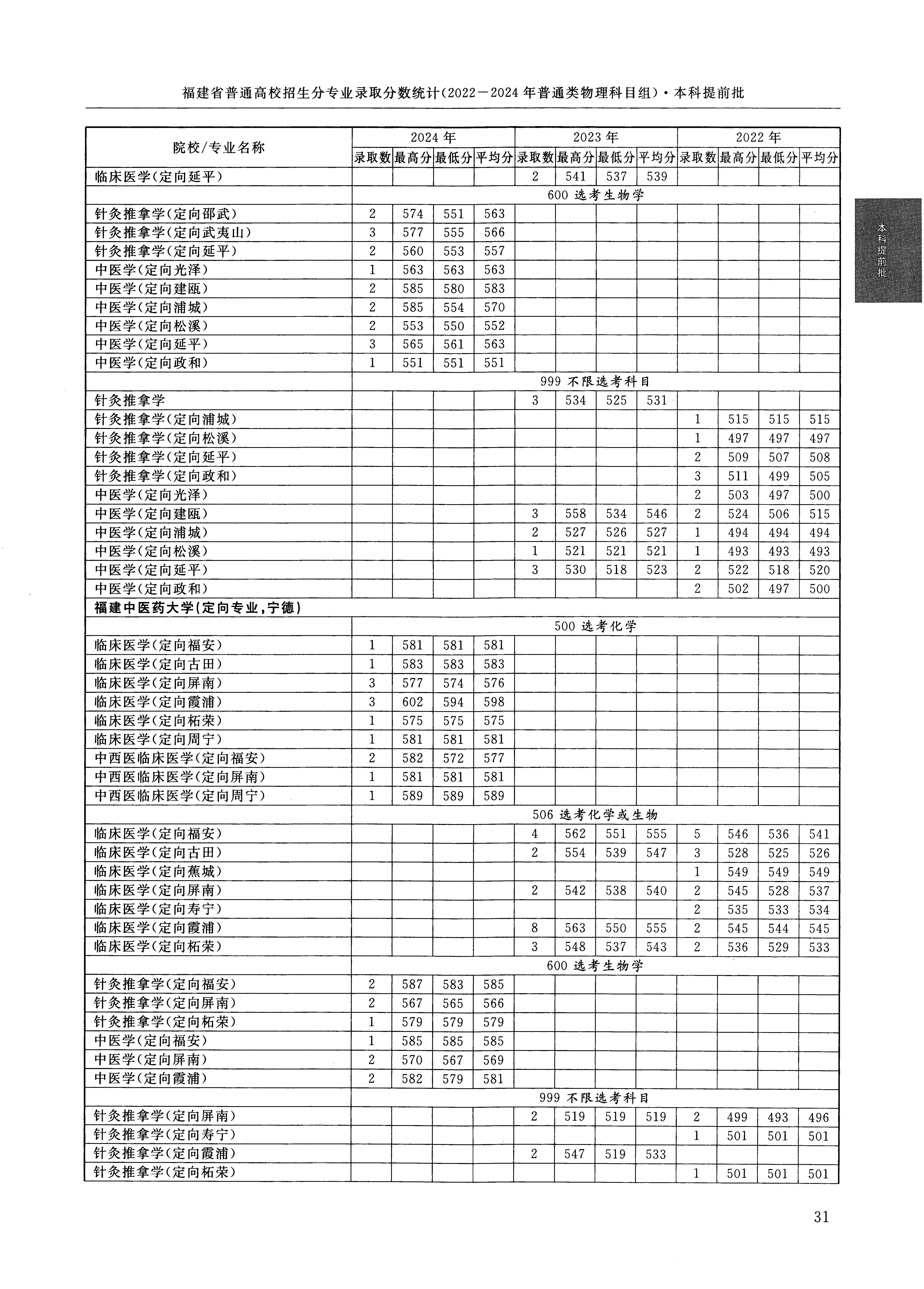 2024年福建高考普通类本科提前批 福建中医药大学 的 临床医学 专业录取分数溯源信息