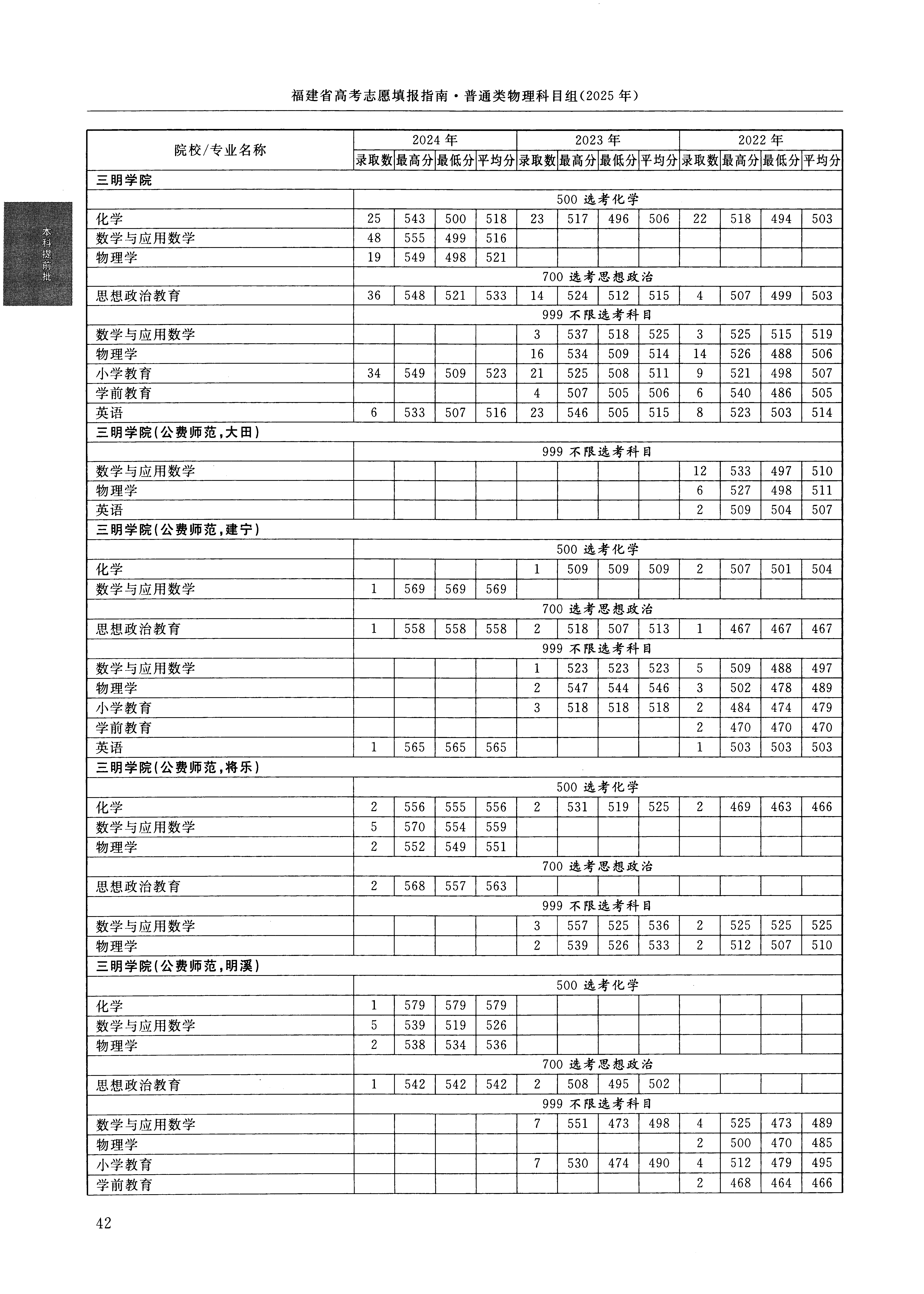 2024年福建高考普通类本科提前批 三明学院 的 英语 专业录取分数溯源信息