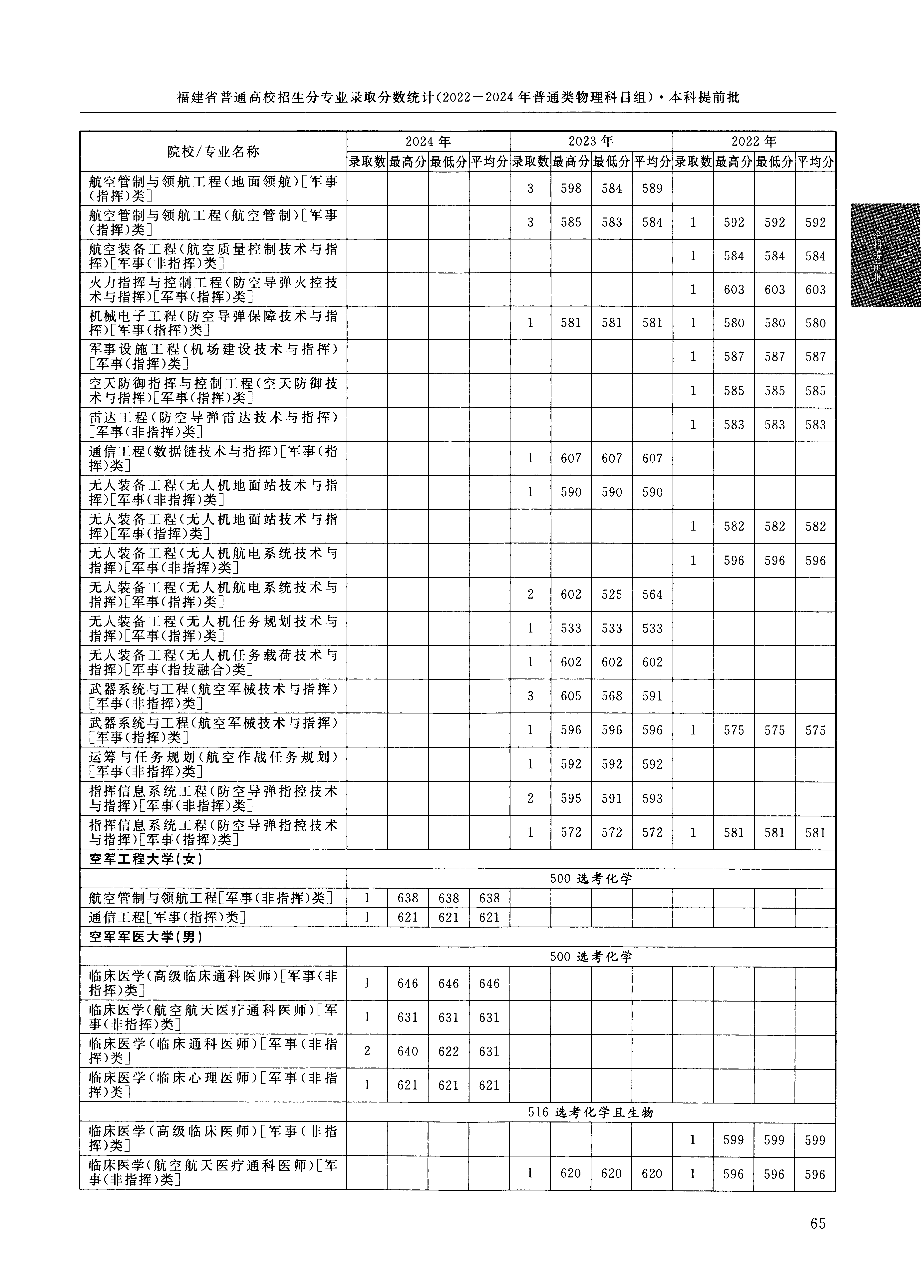 2024年福建高考普通类本科提前批 空军工程大学 的 航空管制与领航工程 专业录取分数溯源信息