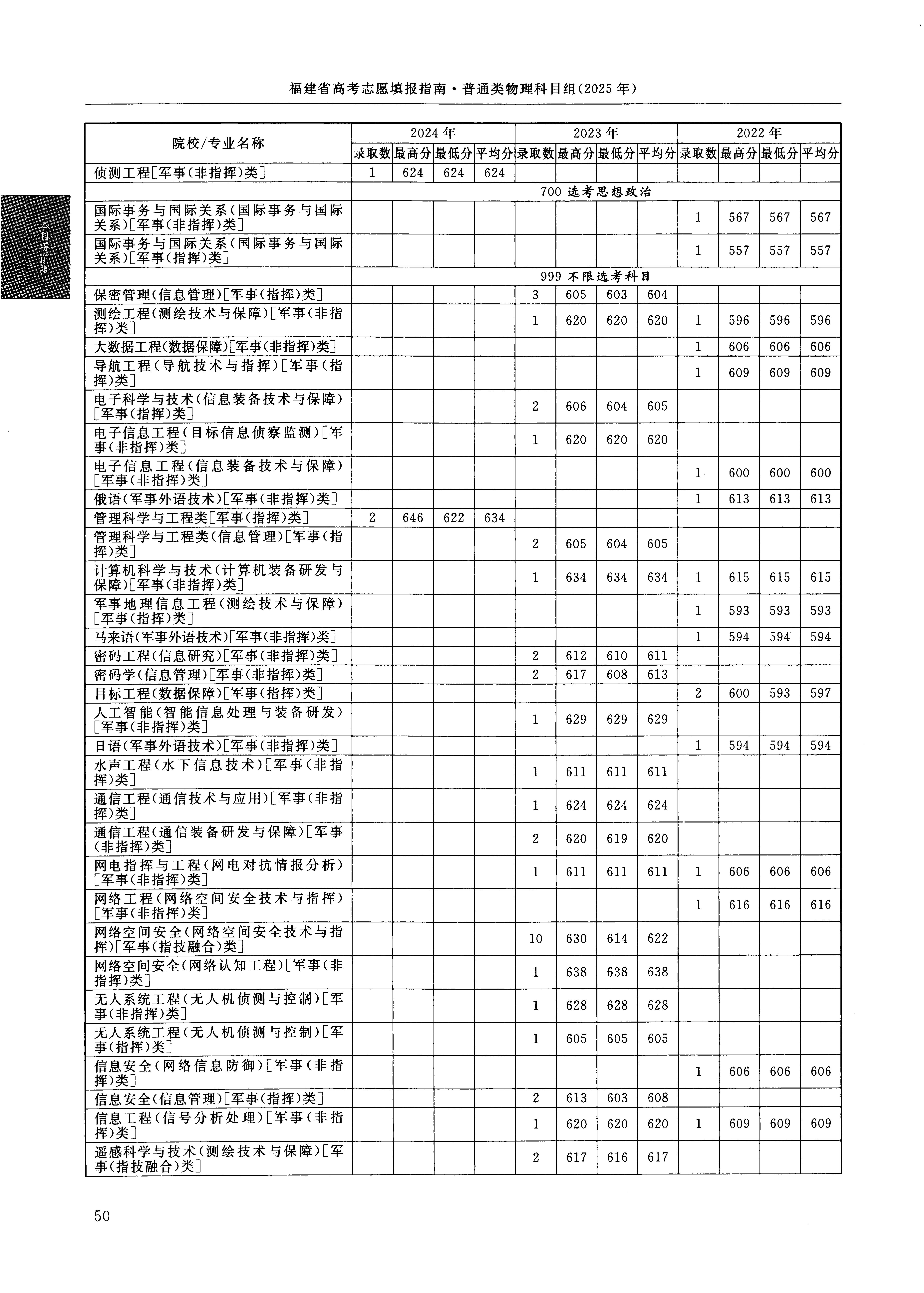 2024年福建高考普通类本科提前批 战略支援部队信息工程大学 的 侦测工程 专业录取分数溯源信息
