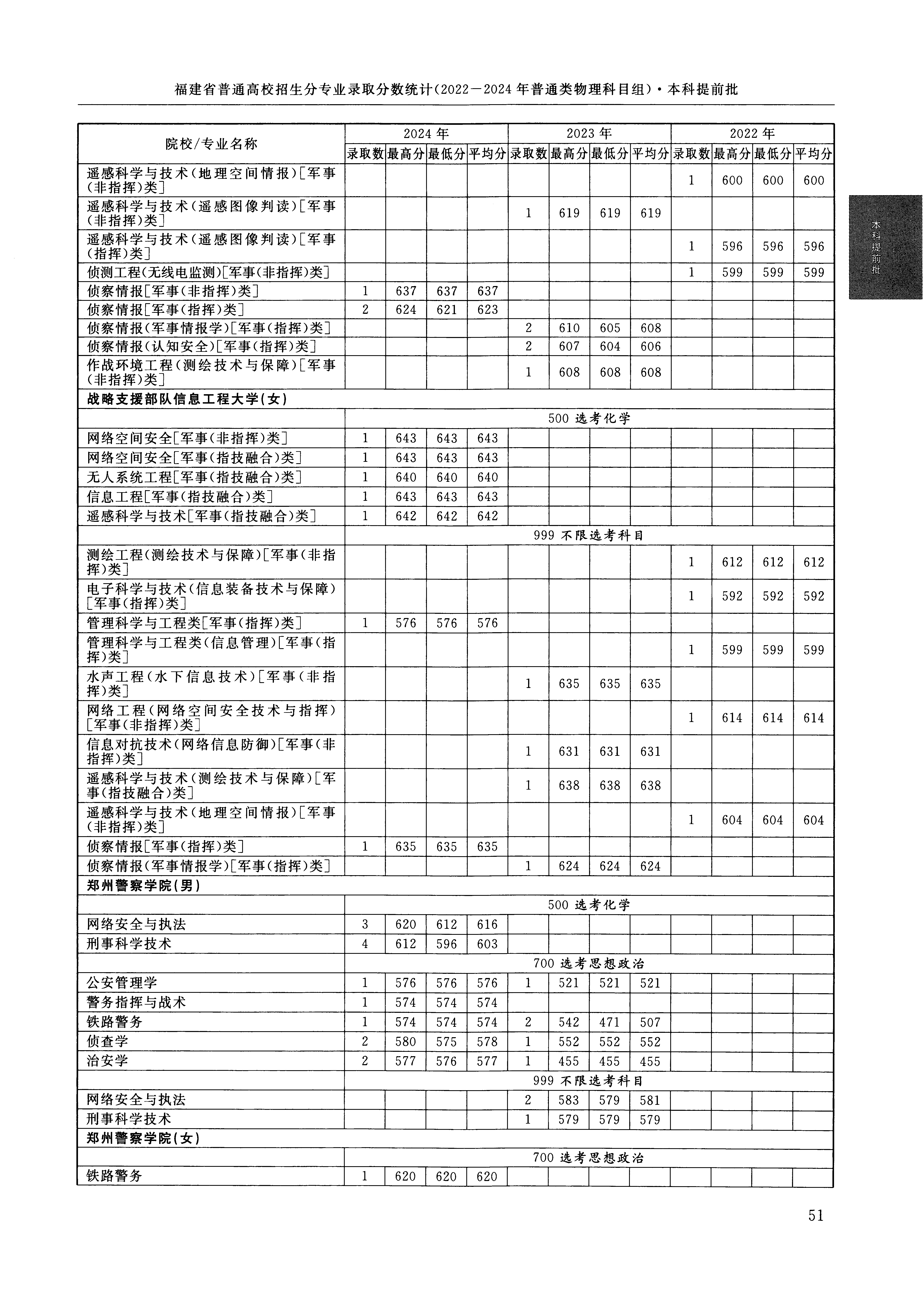 2024年福建高考普通类本科提前批 战略支援部队信息工程大学 的 网络空间安全 专业录取分数溯源信息