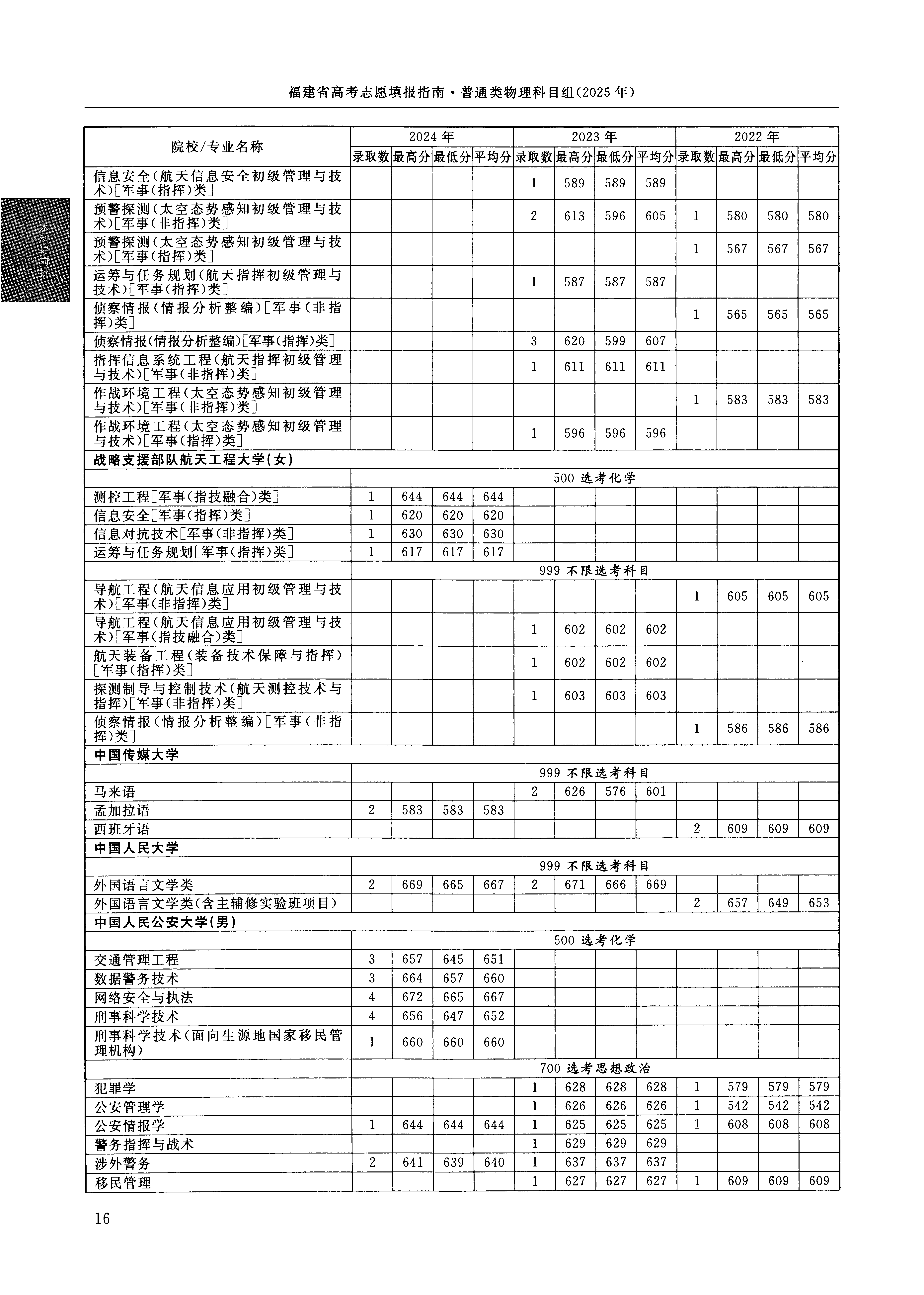 2024年福建高考普通类本科提前批 中国人民公安大学 的 涉外警务 专业录取分数溯源信息