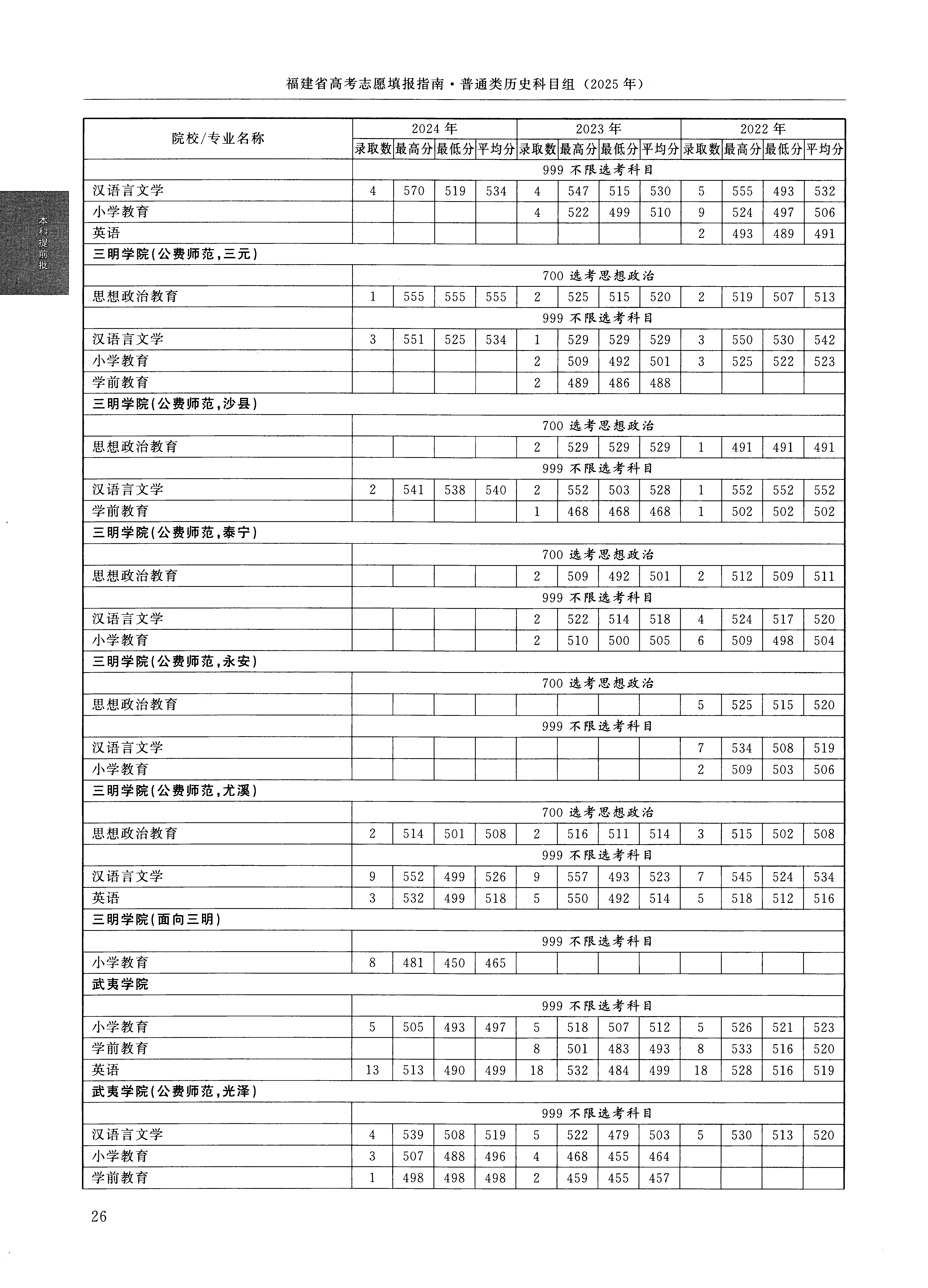 2024年福建高考普通类本科提前批 三明学院 的 汉语言文学 专业录取分数溯源信息