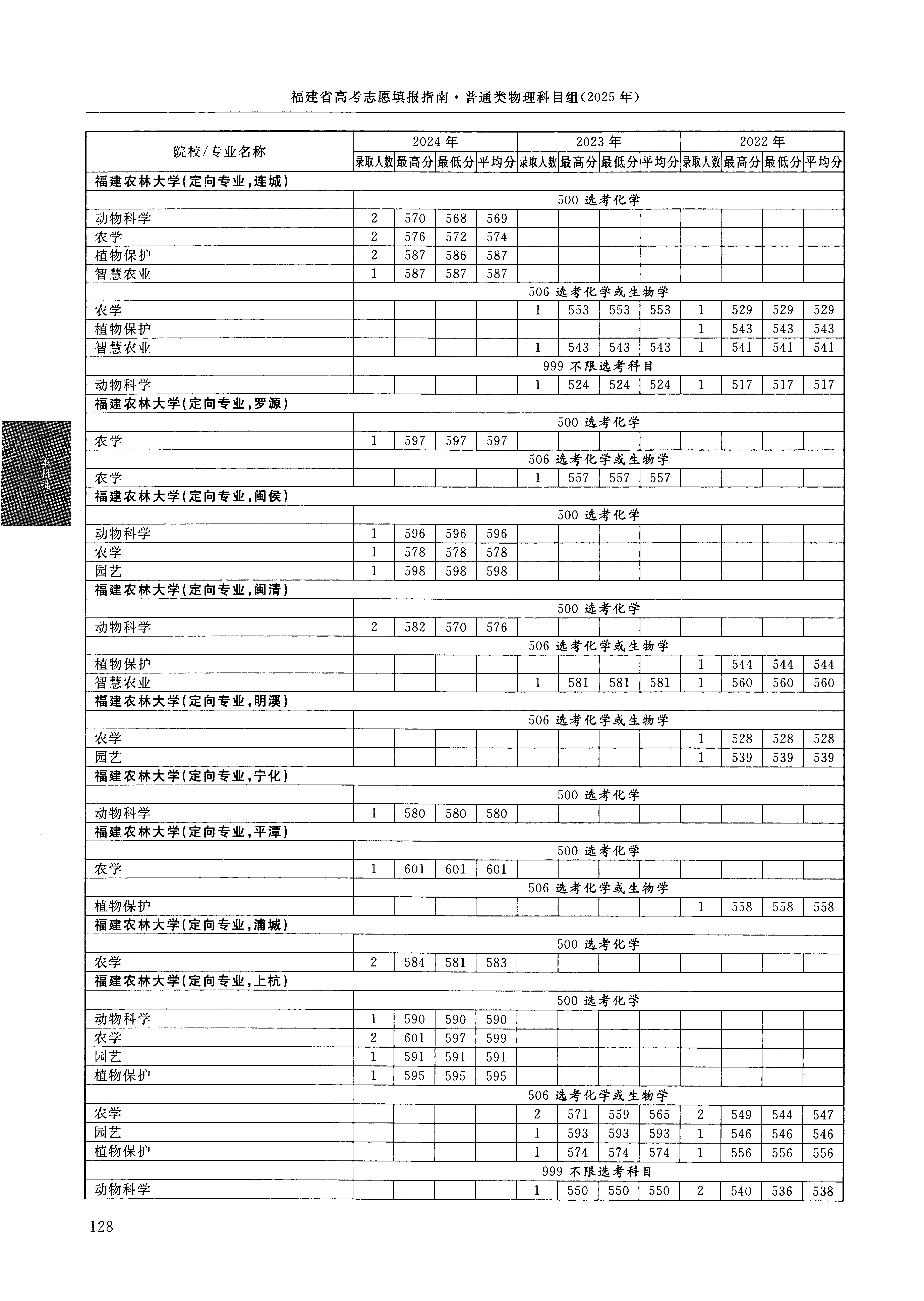2024年福建高考普通类本科批 福建农林大学 的 智慧农业 专业录取分数溯源信息