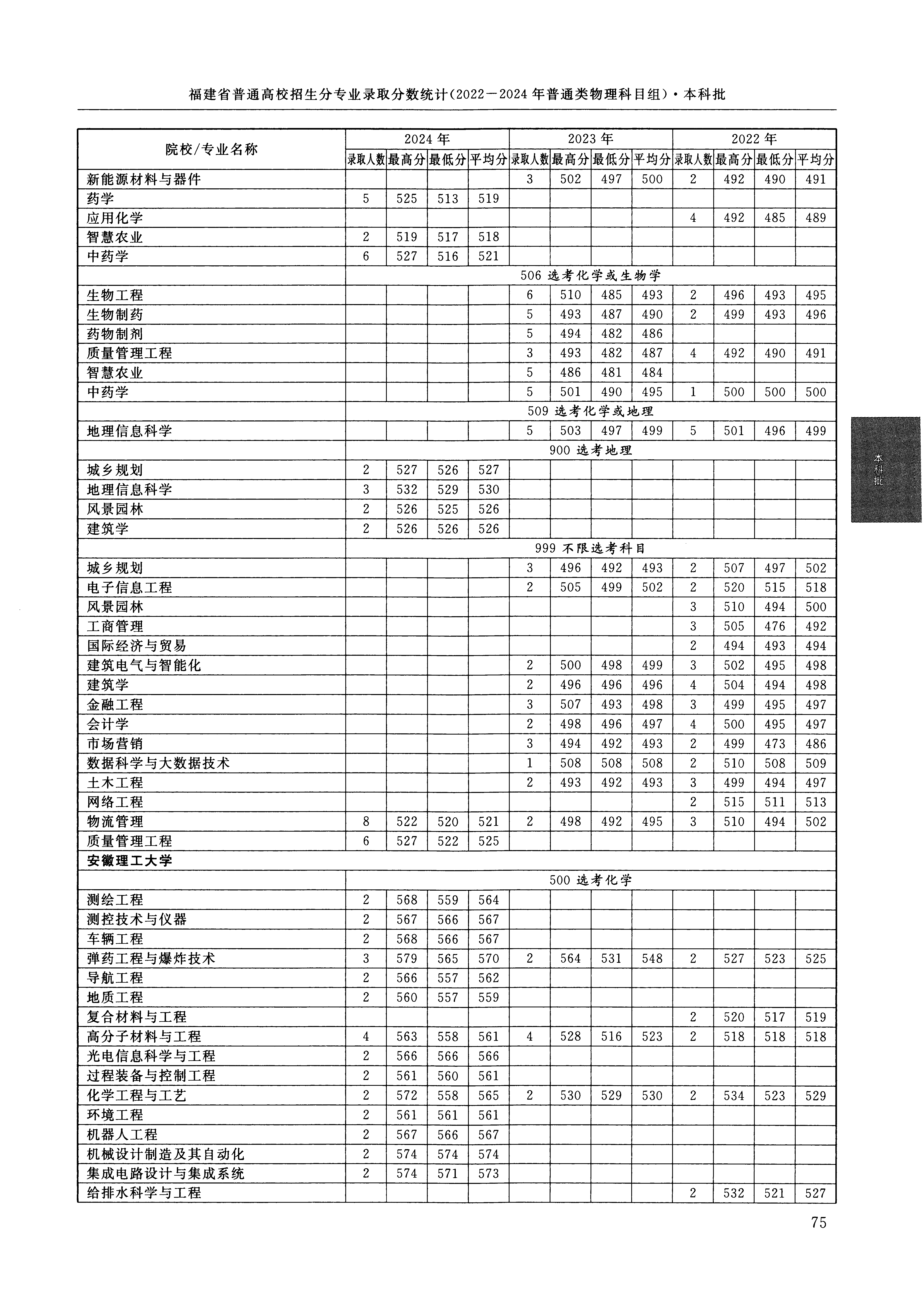 2024年福建高考普通类本科批 安徽理工大学 的 化学工程与工艺 专业录取分数溯源信息