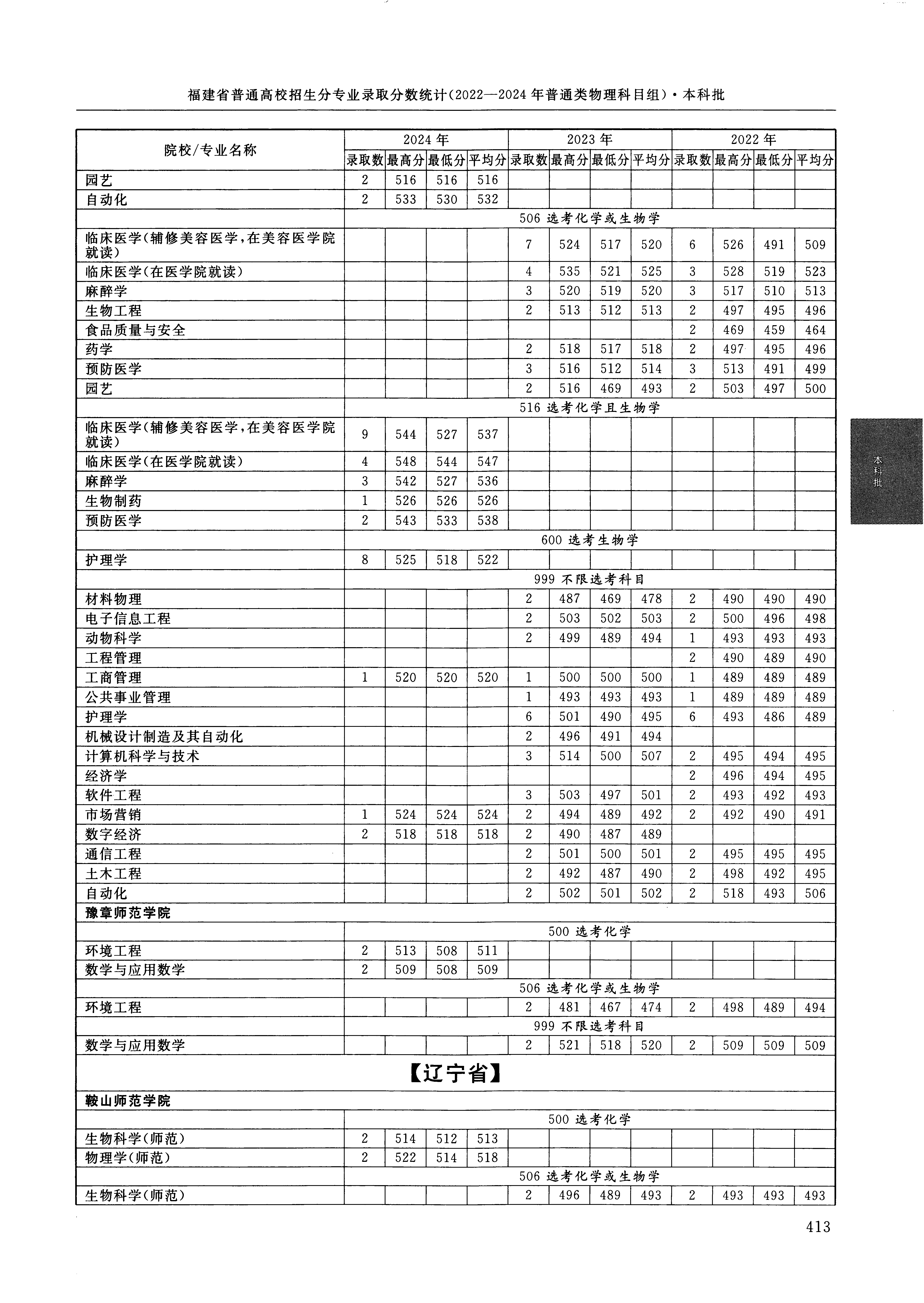 2024年福建高考普通类本科批 鞍山师范学院 的 物理学 专业录取分数溯源信息