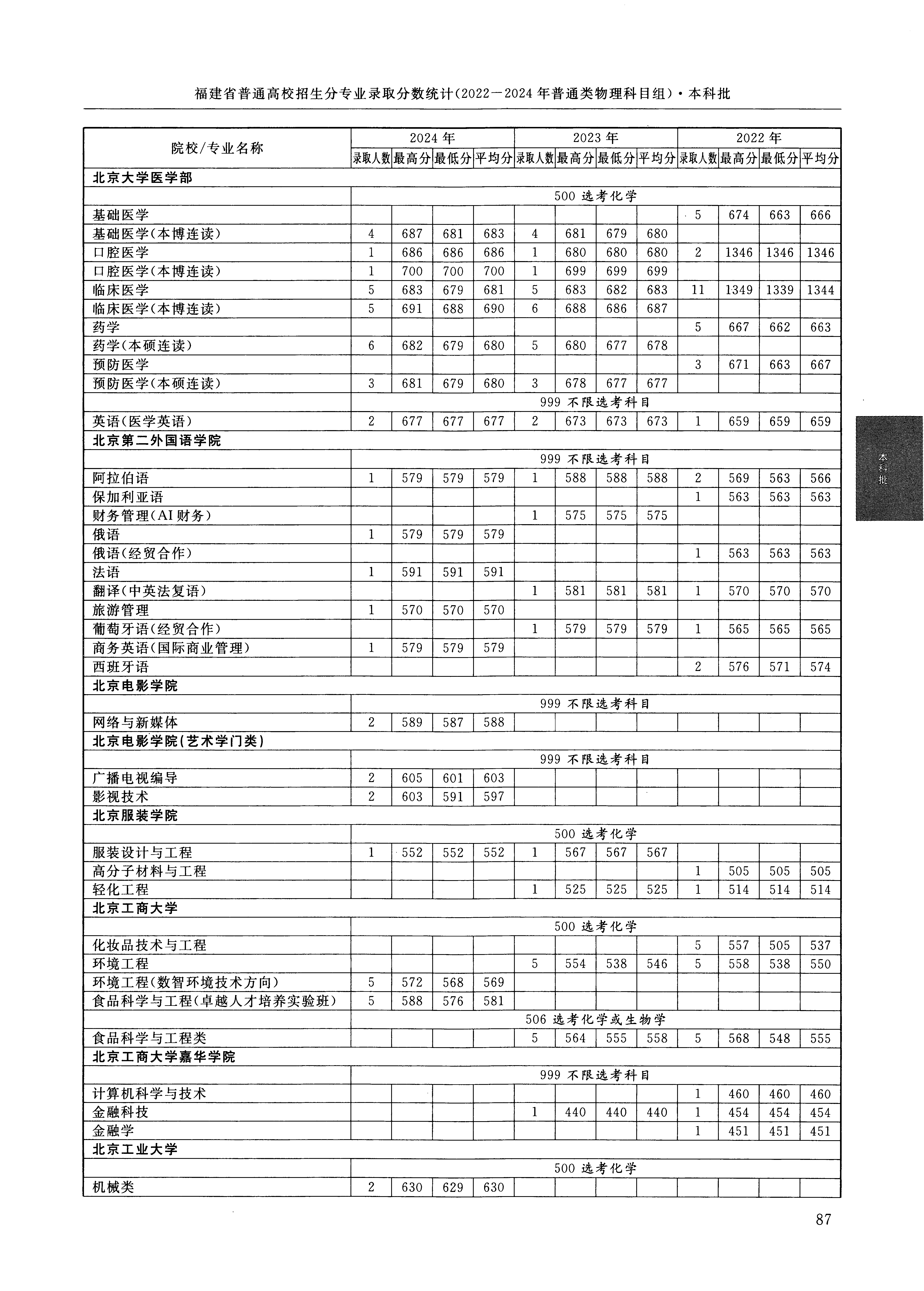 2024年福建高考普通类本科批 北京第二外国语学院 的 旅游管理 专业录取分数溯源信息