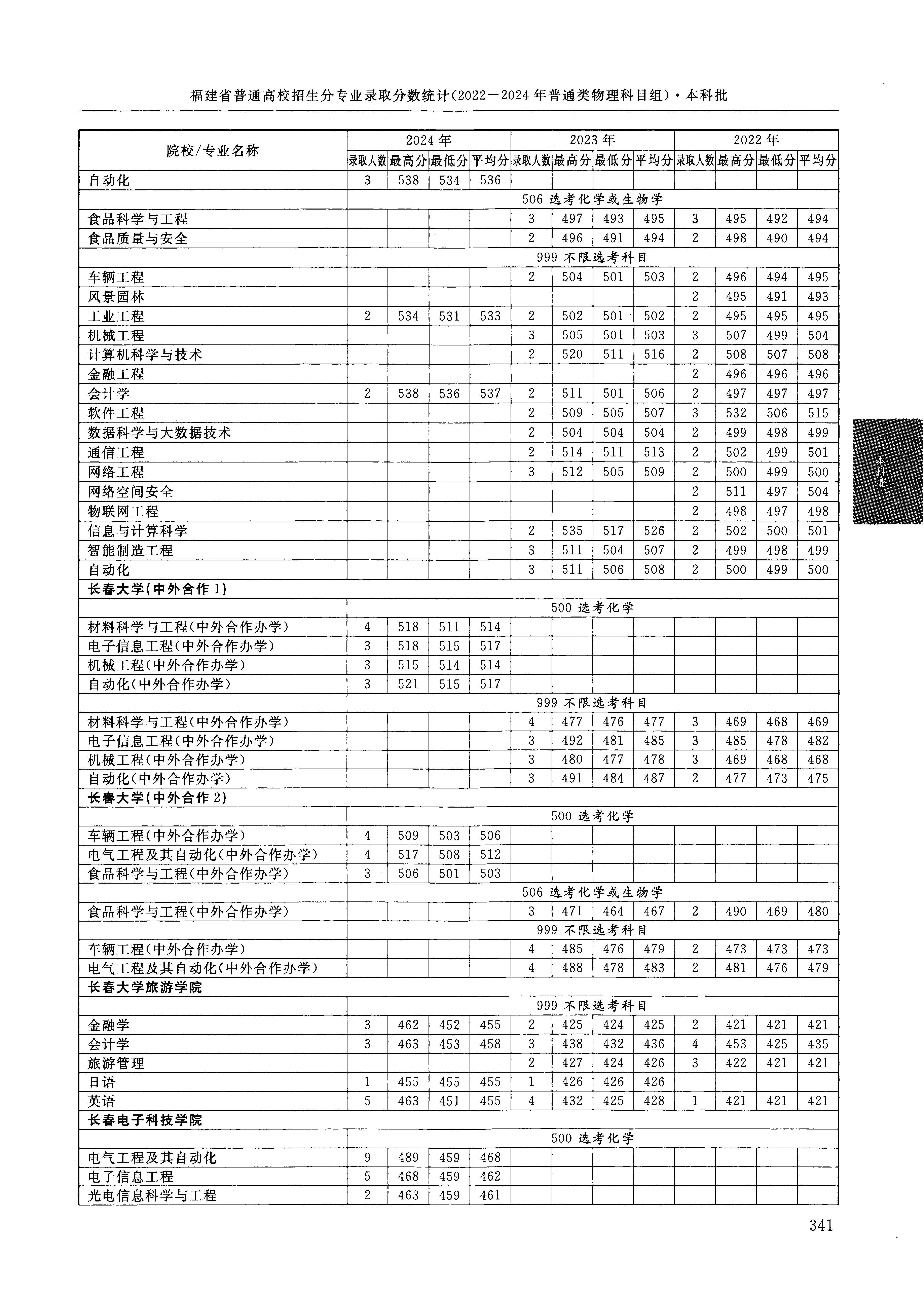 2024年福建高考普通类本科批 长春大学 的 材料科学与工程 专业录取分数溯源信息
