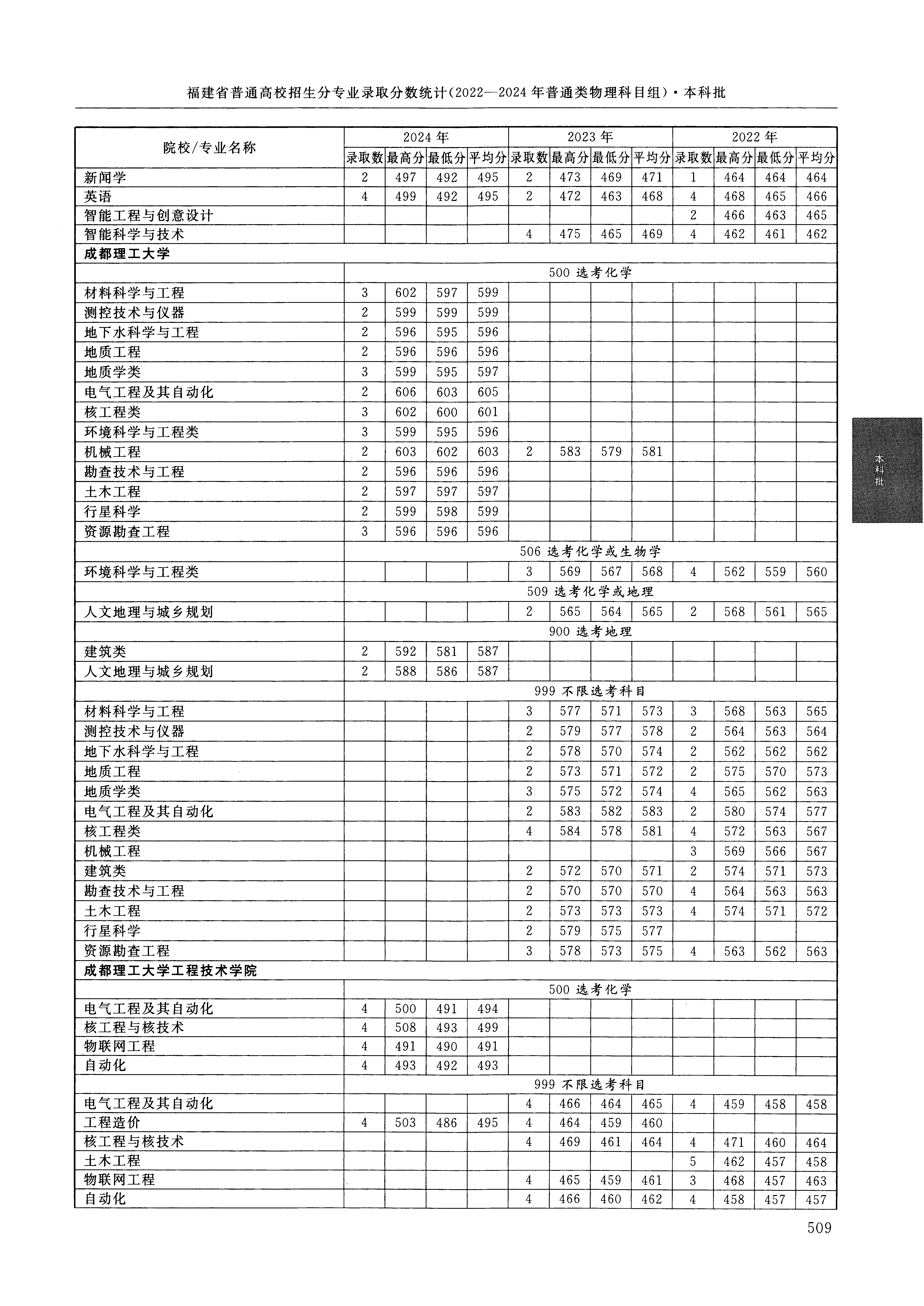 2024年福建高考普通类本科批 成都理工大学 的 材料科学与工程 专业录取分数溯源信息