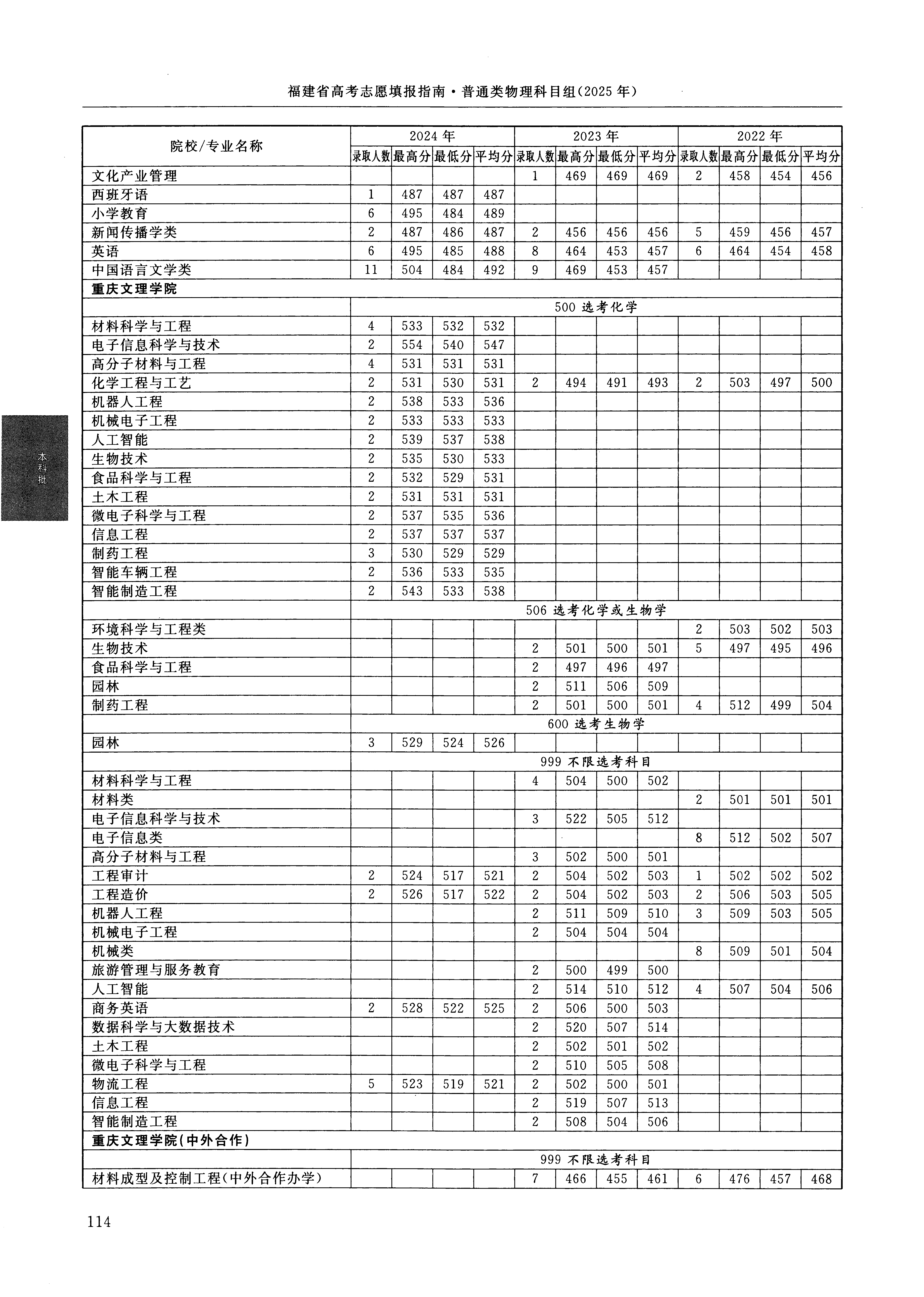 2024年福建高考普通类本科批 重庆文理学院 的 材料科学与工程 专业录取分数溯源信息