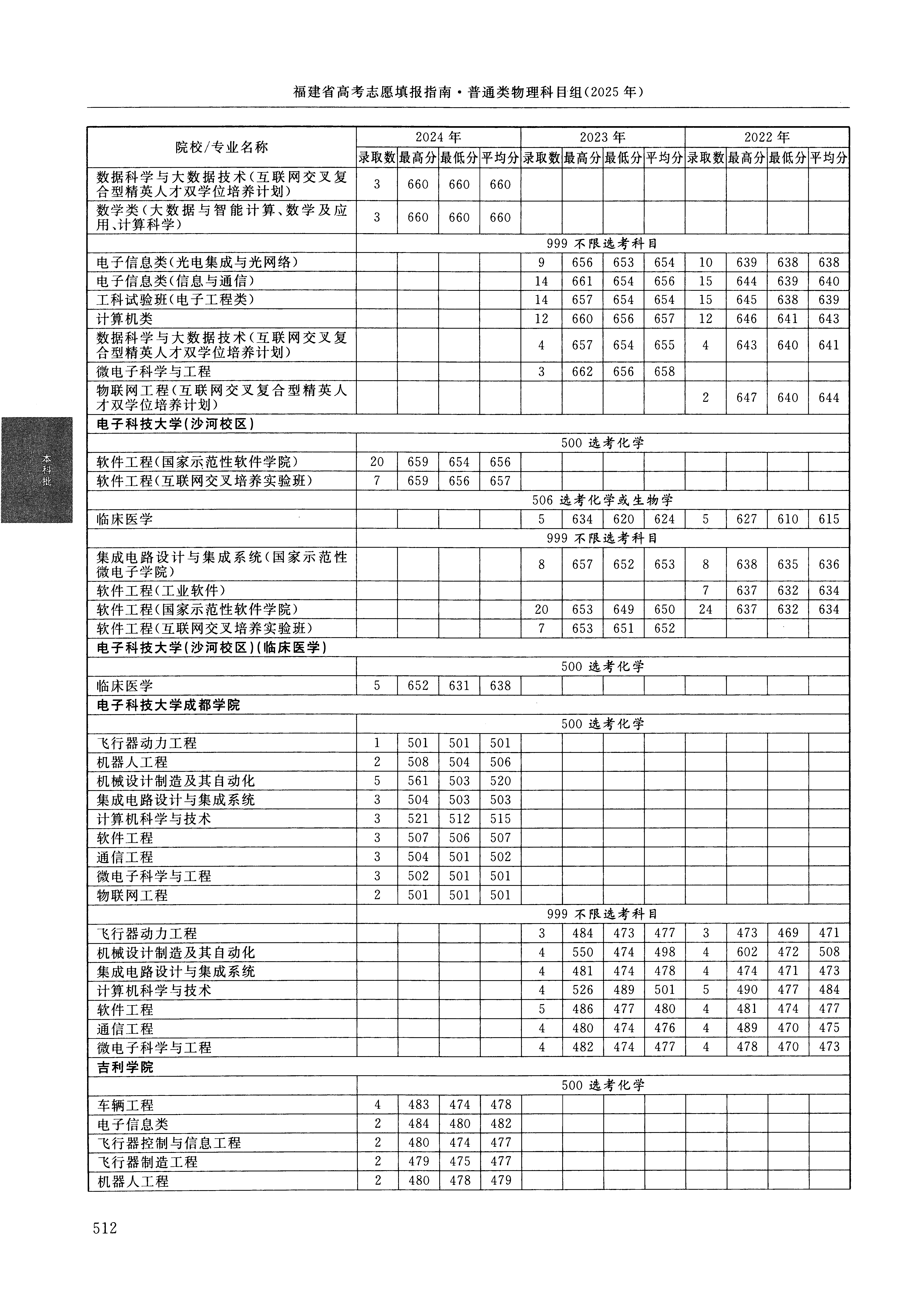2024年福建高考普通类本科批 电子科技大学(沙河校区) 的 软件工程 专业录取分数溯源信息