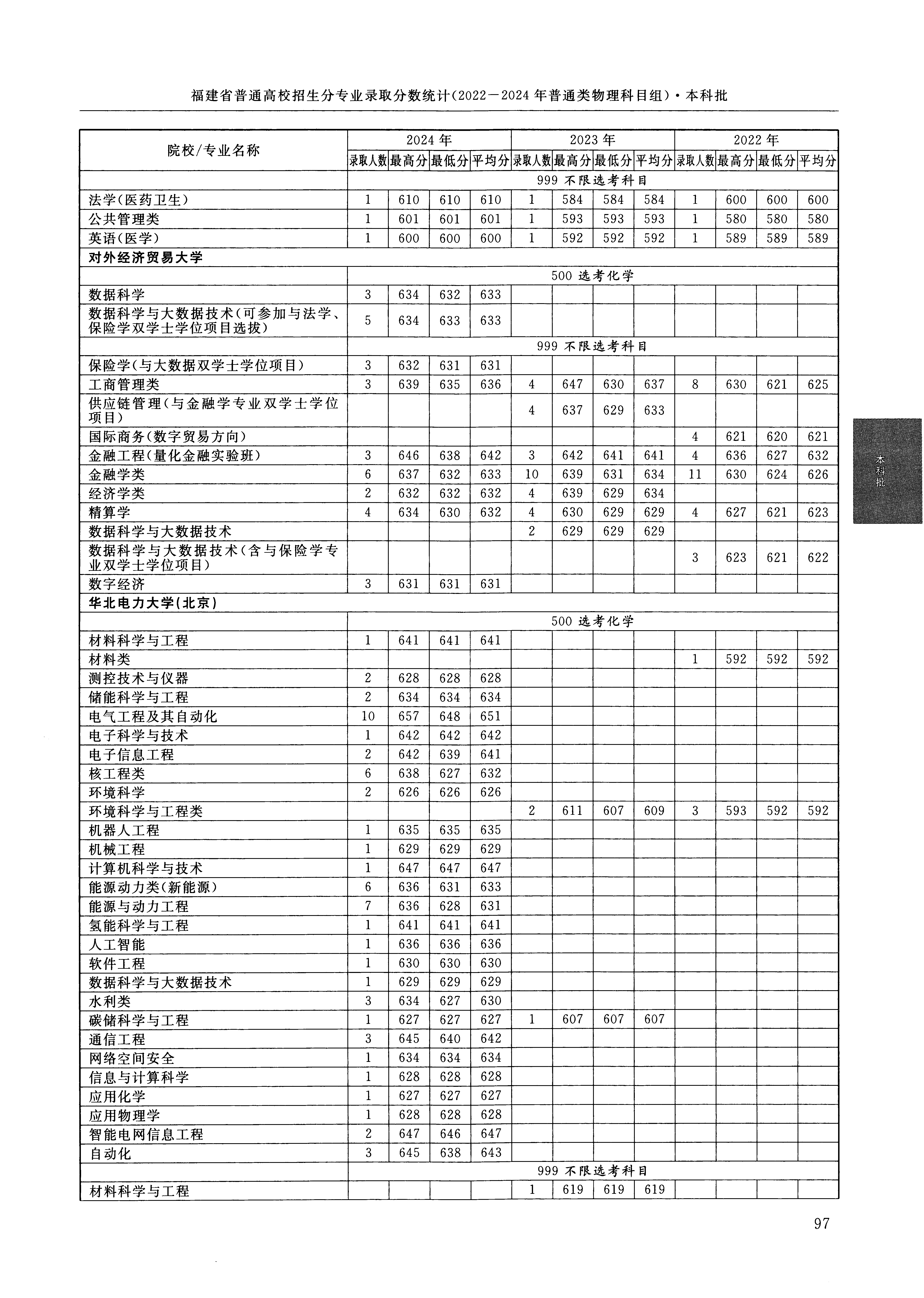 2024年福建高考普通类本科批 对外经济贸易大学 的 经济学类 专业录取分数溯源信息