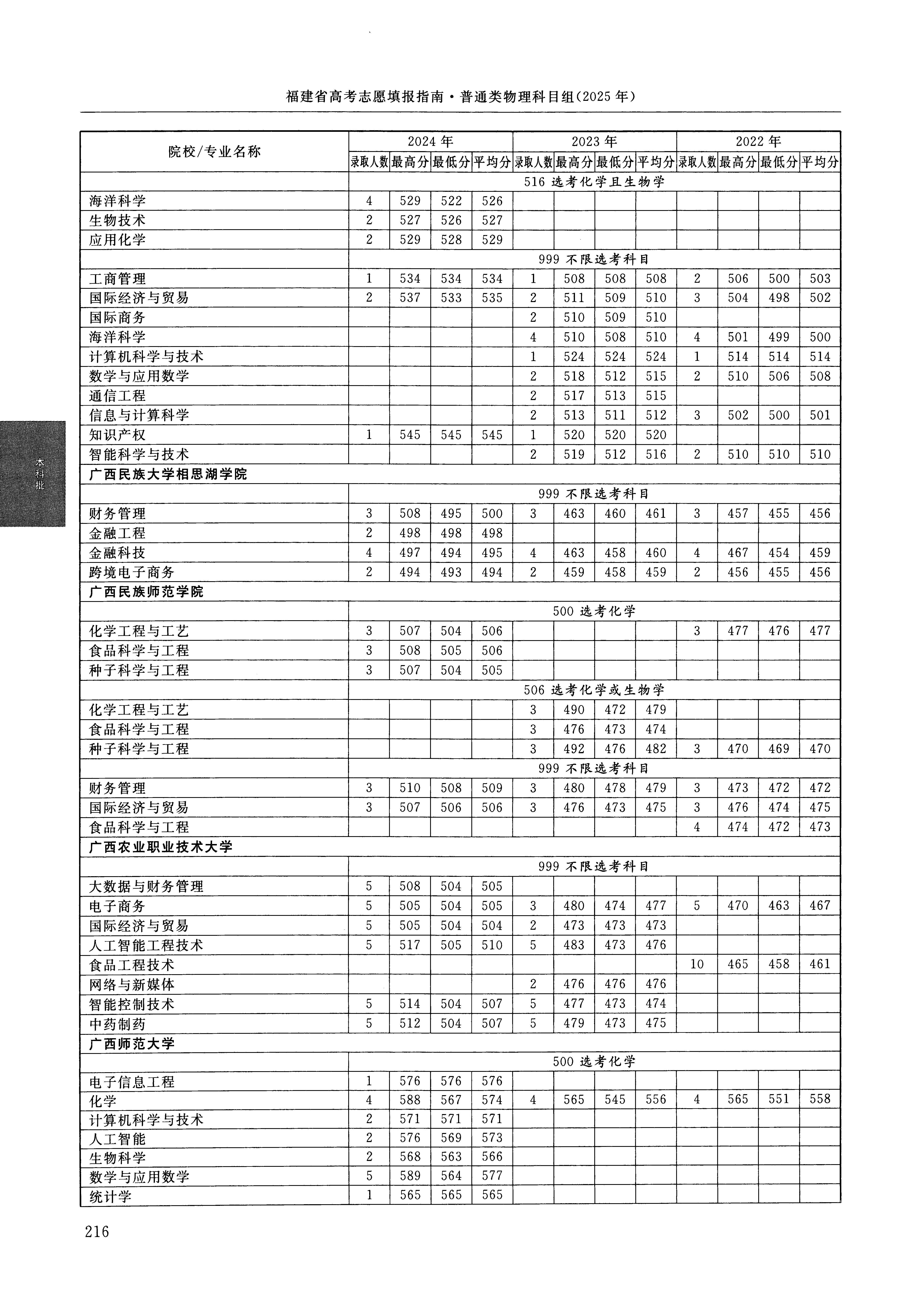 2024年福建高考普通类本科批 广西师范大学 的 生物科学 专业录取分数溯源信息