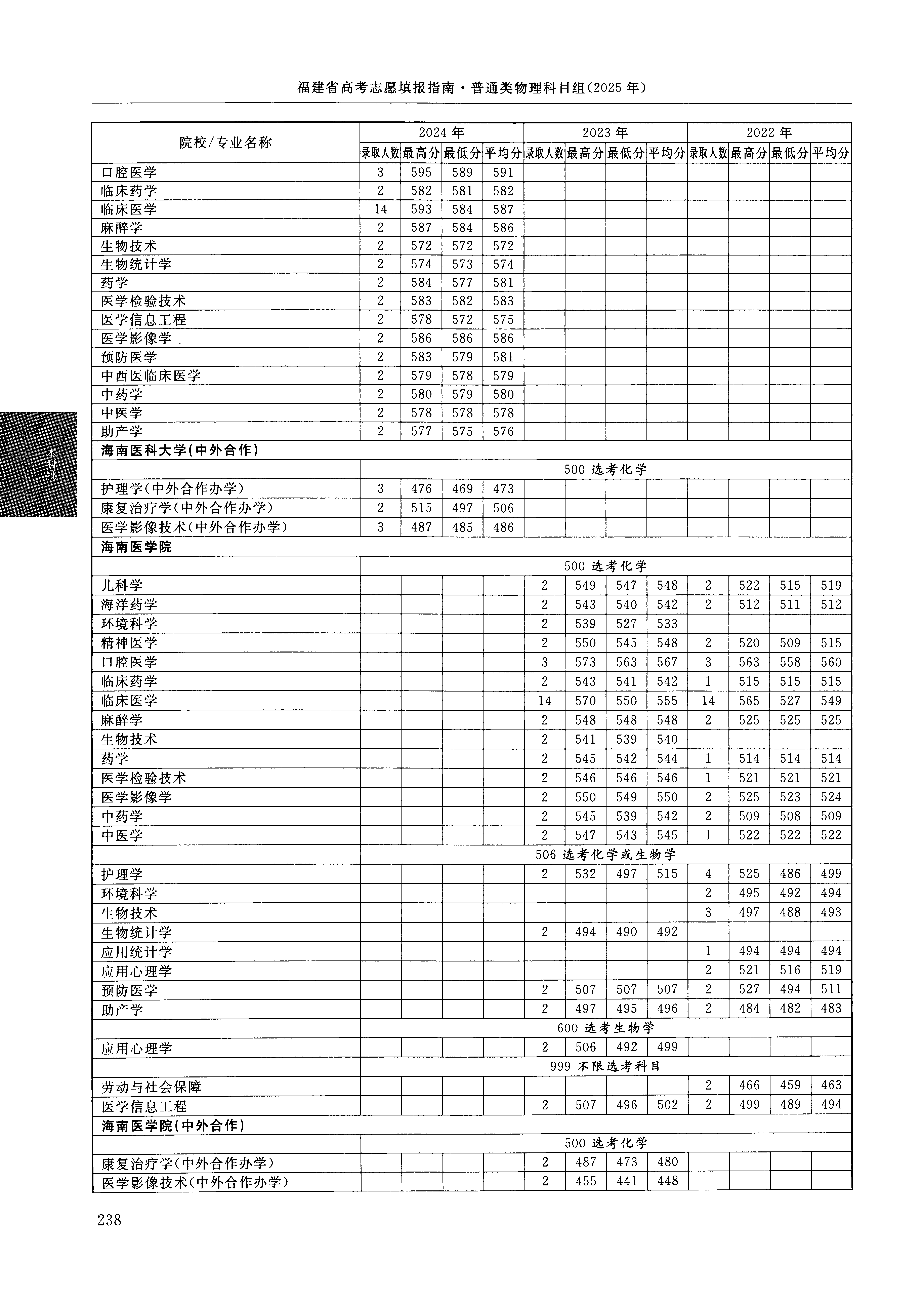 2024年福建高考普通类本科批 海南医科大学 的 麻醉学 专业录取分数溯源信息
