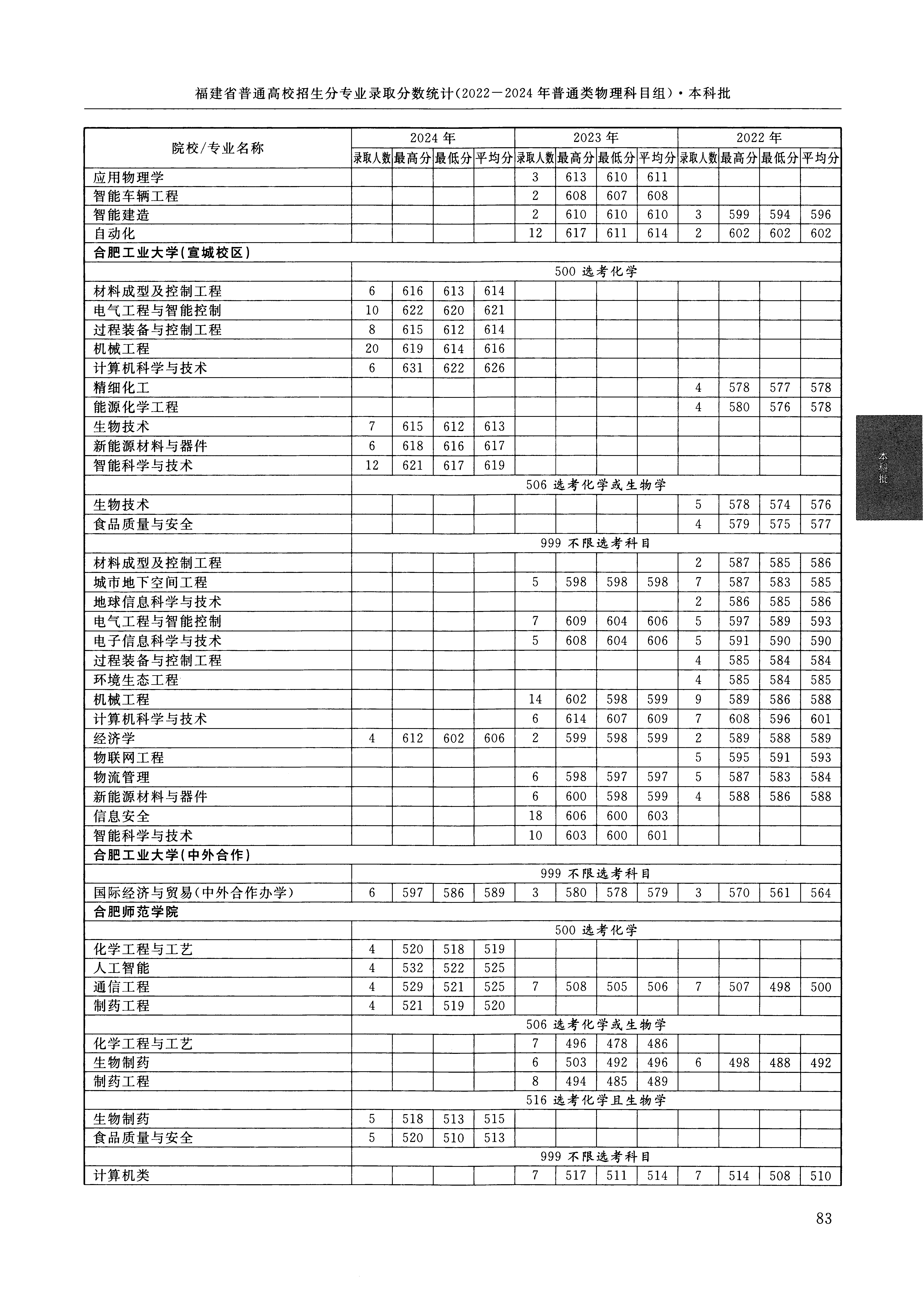 2024年福建高考普通类本科批 合肥工业大学(宣城校区) 的 材料成型及控制工程 专业录取分数溯源信息