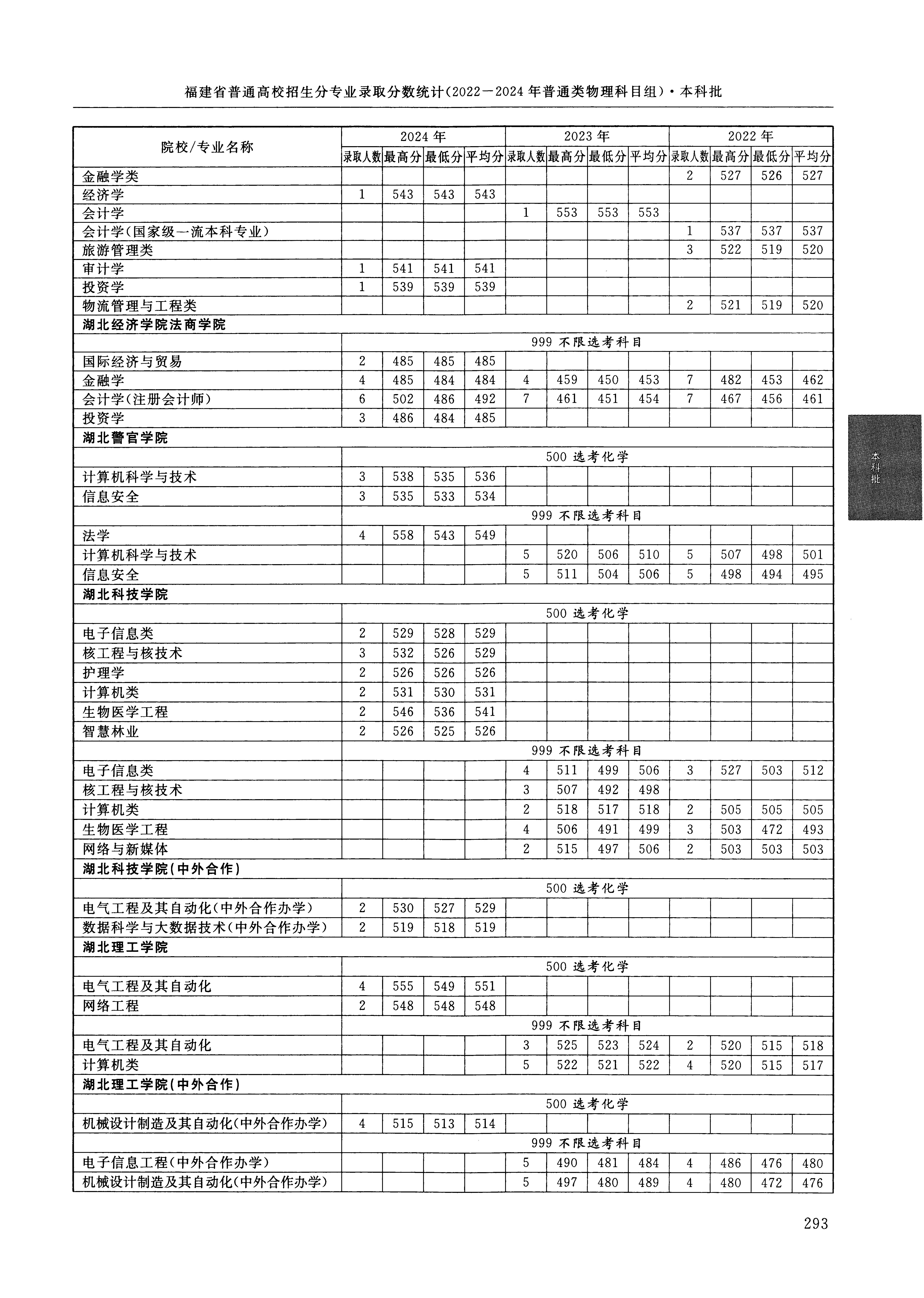 2024年福建高考普通类本科批 湖北警官学院 的 计算机科学与技术 专业录取分数溯源信息