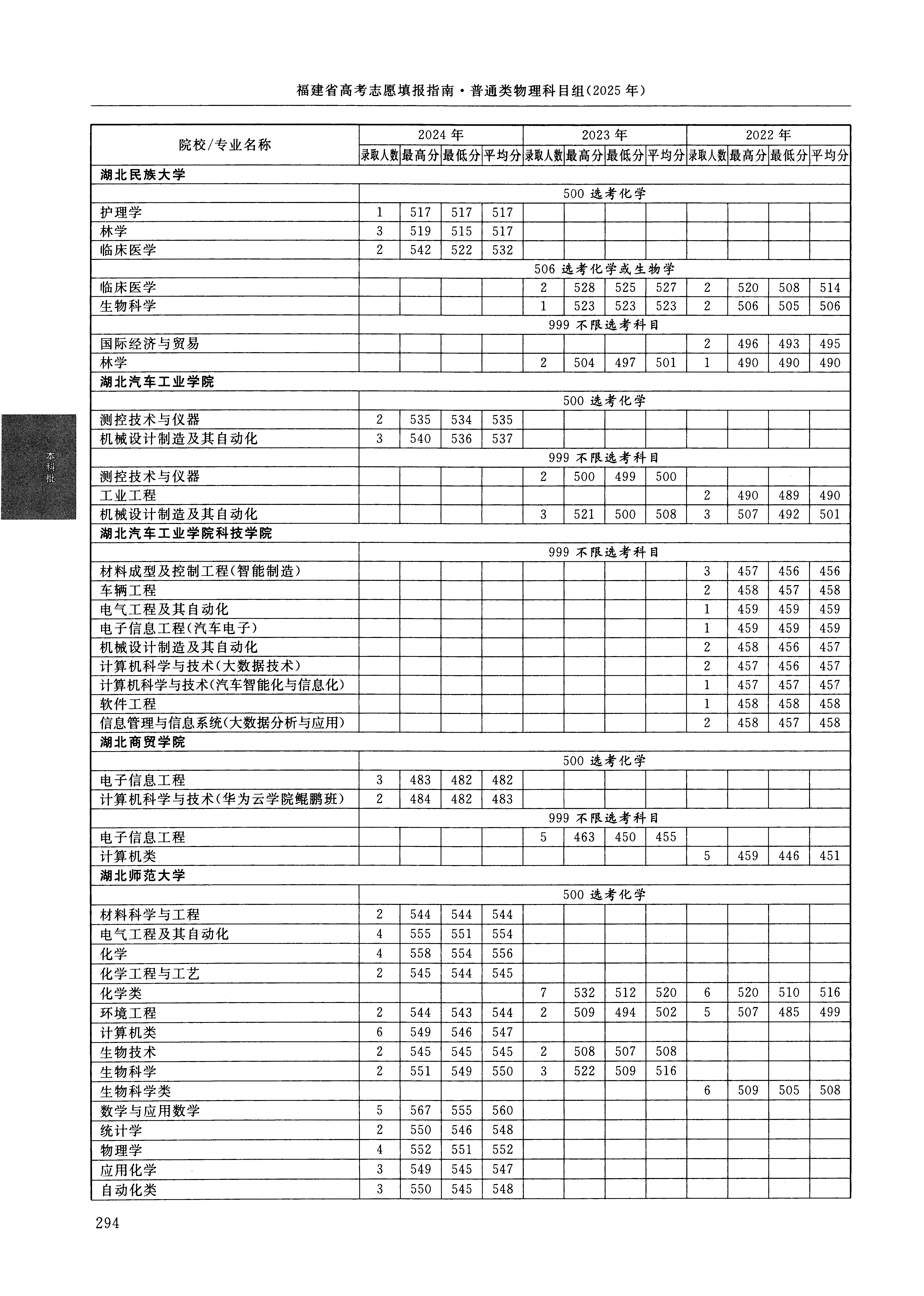 2024年福建高考普通类本科批 湖北汽车工业学院 的 测控技术与仪器 专业录取分数溯源信息