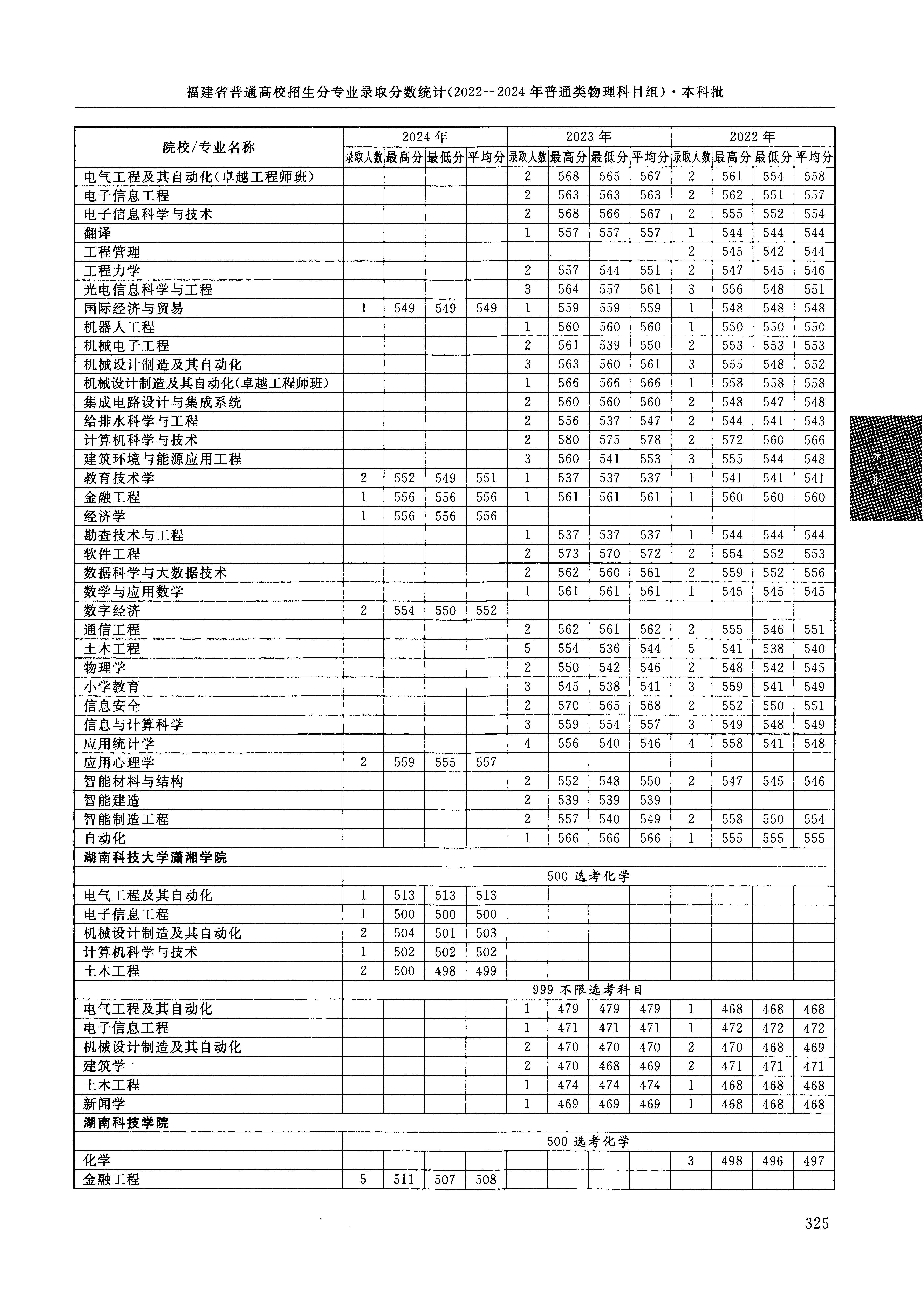 2024年福建高考普通类本科批 湖南科技大学潇湘学院 的 电子信息工程 专业录取分数溯源信息