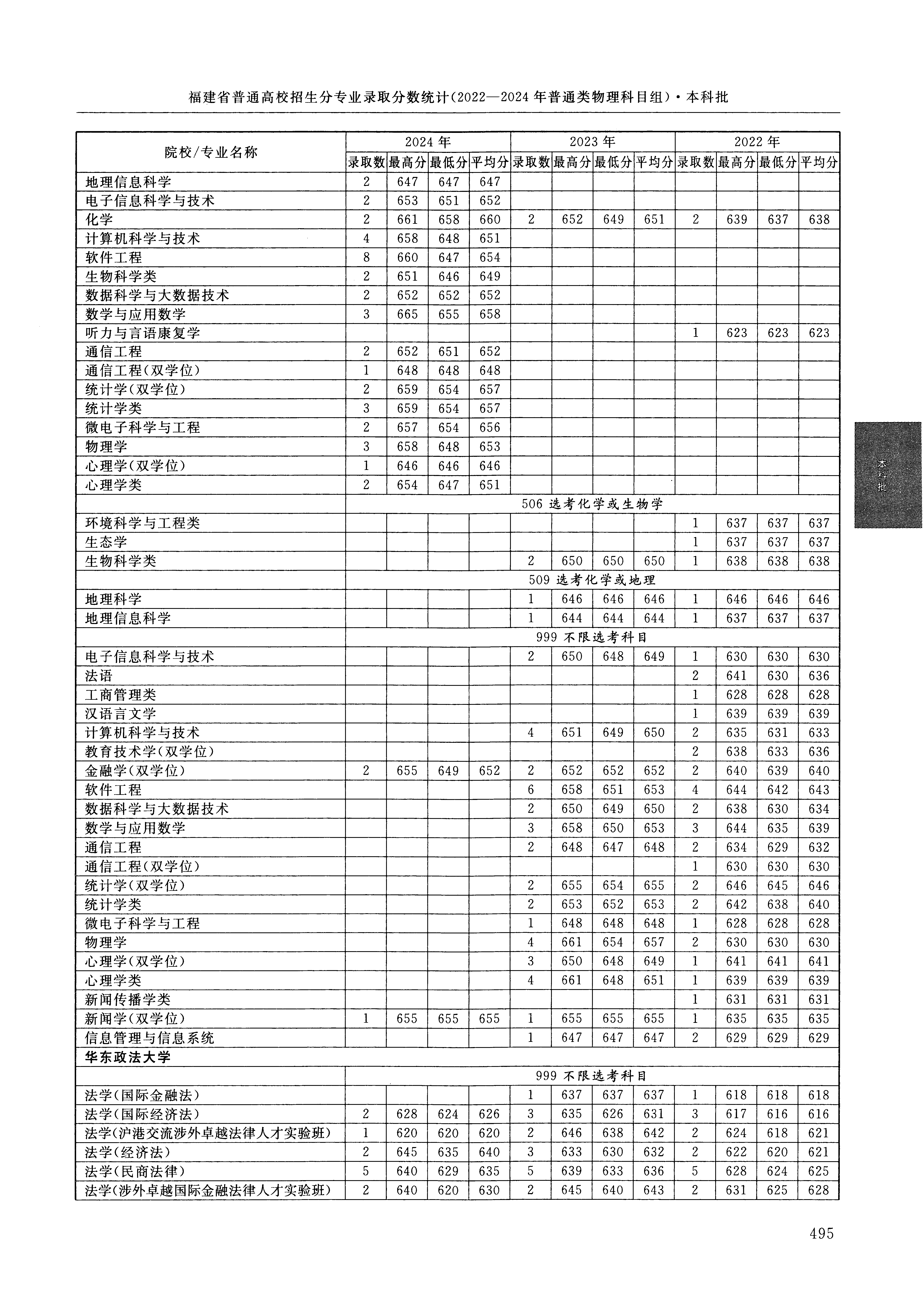2024年福建高考普通类本科批 华东师范大学 的 通信工程 专业录取分数溯源信息