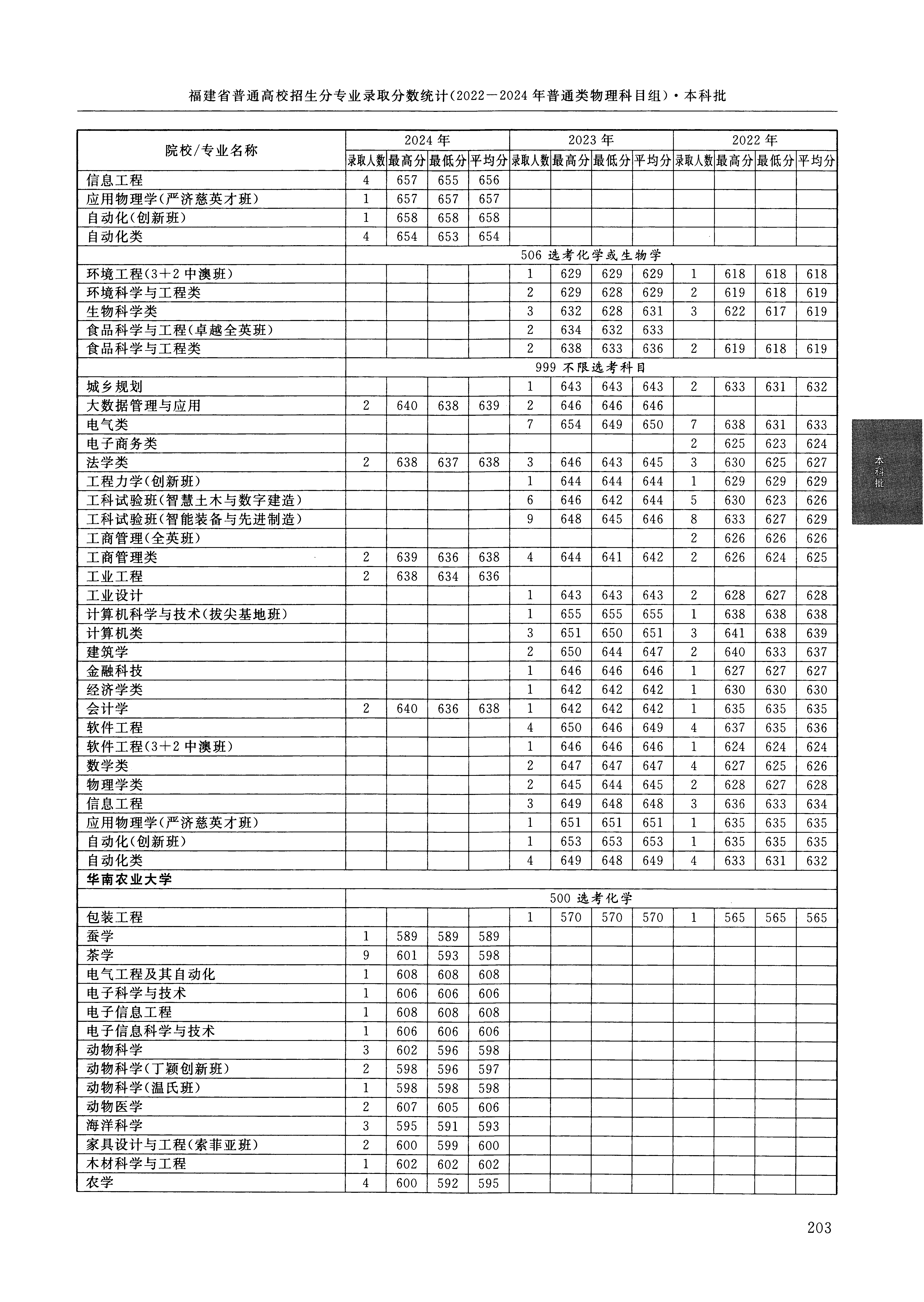 2024年福建高考普通类本科批 华南农业大学 的 设施农业科学与工程 专业录取分数溯源信息