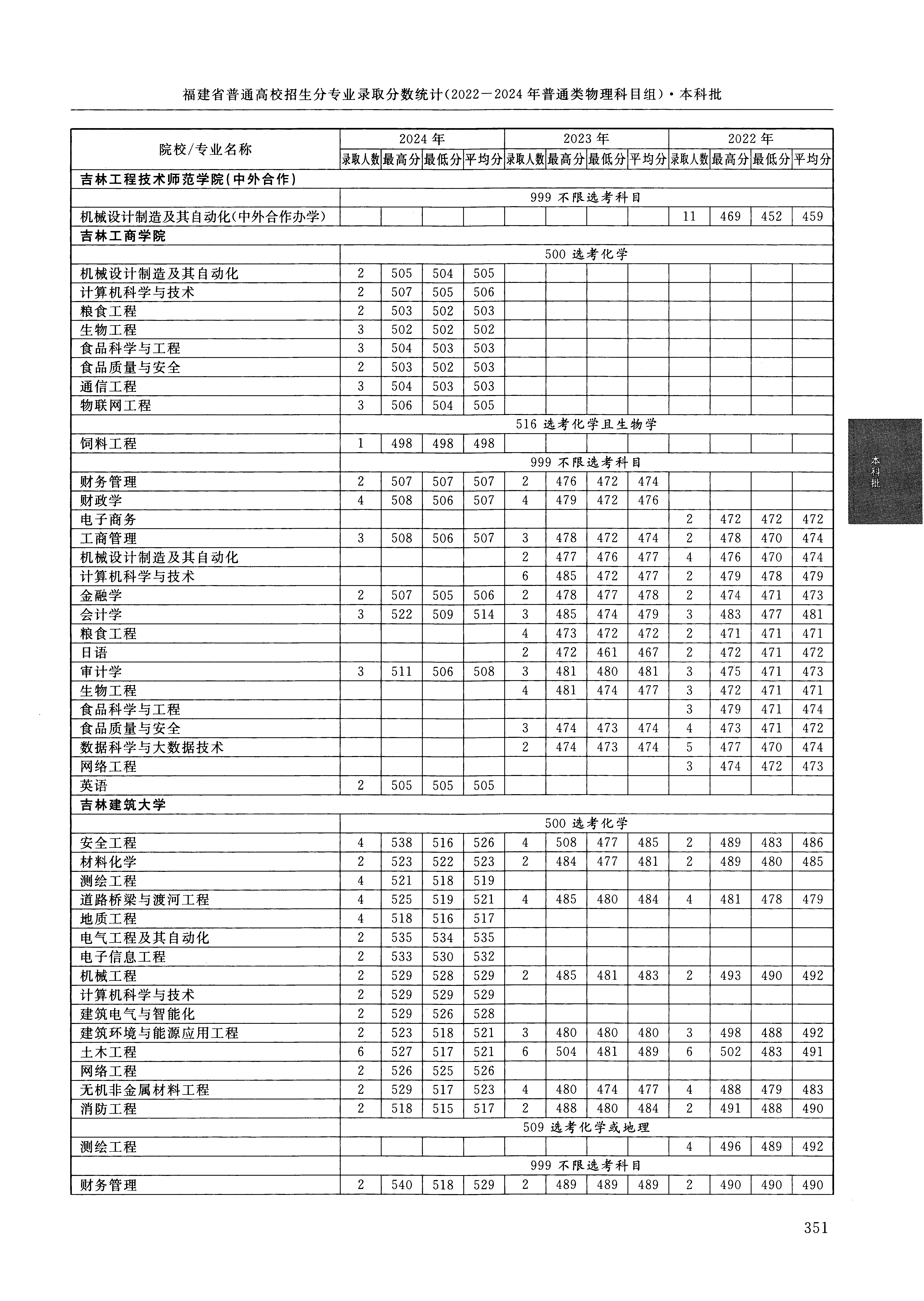 | 2807 | 吉林工商学院 | 005 | 会计学 | 509 | 68125 | 本科 | 物理 ,再选: 不限 | 1 |