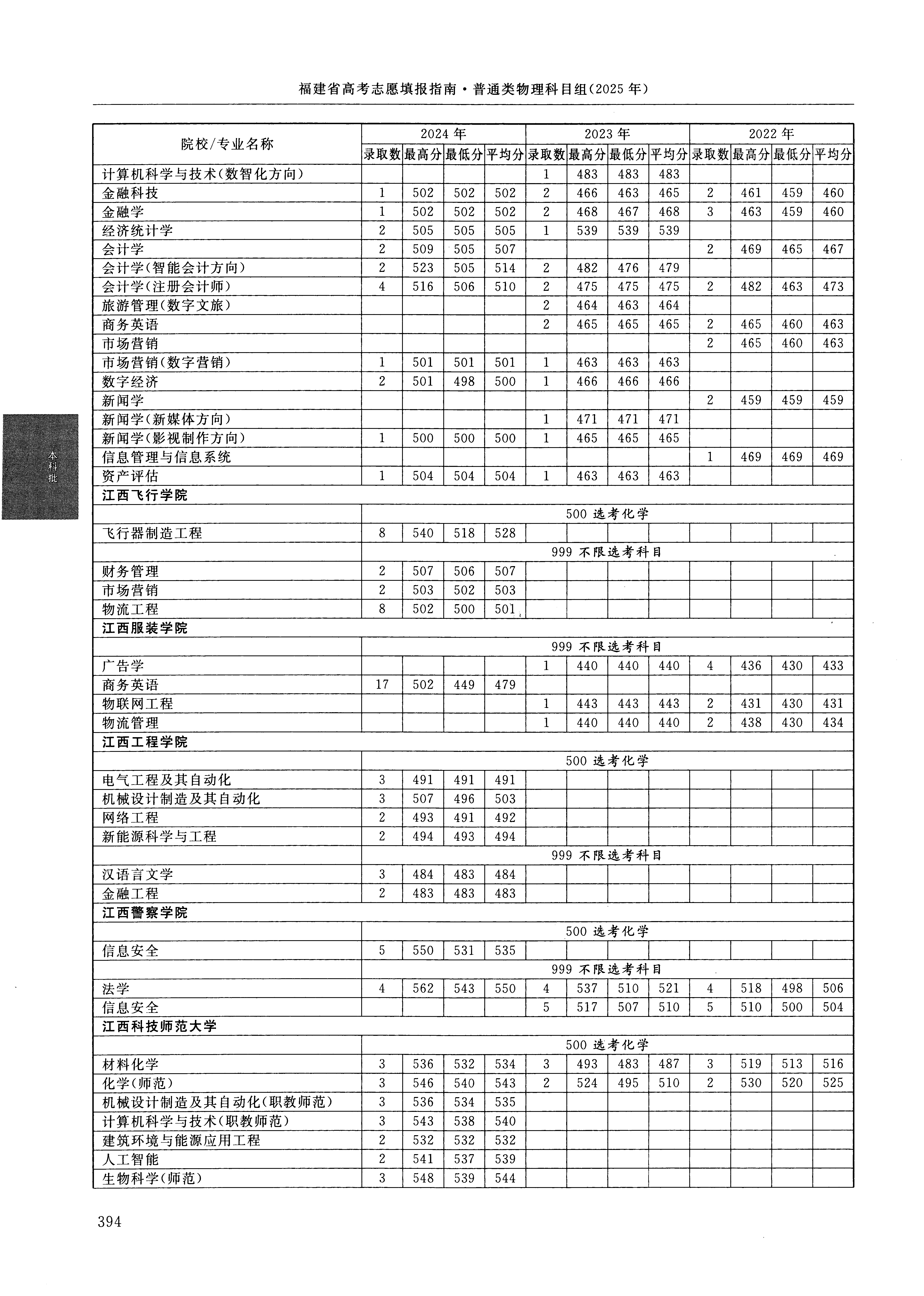 | 2846 | 江西服装学院 | 001 | 商务英语 | 449 | 111573 | 本科 | 物理 ,再选: 不限 | 1 |