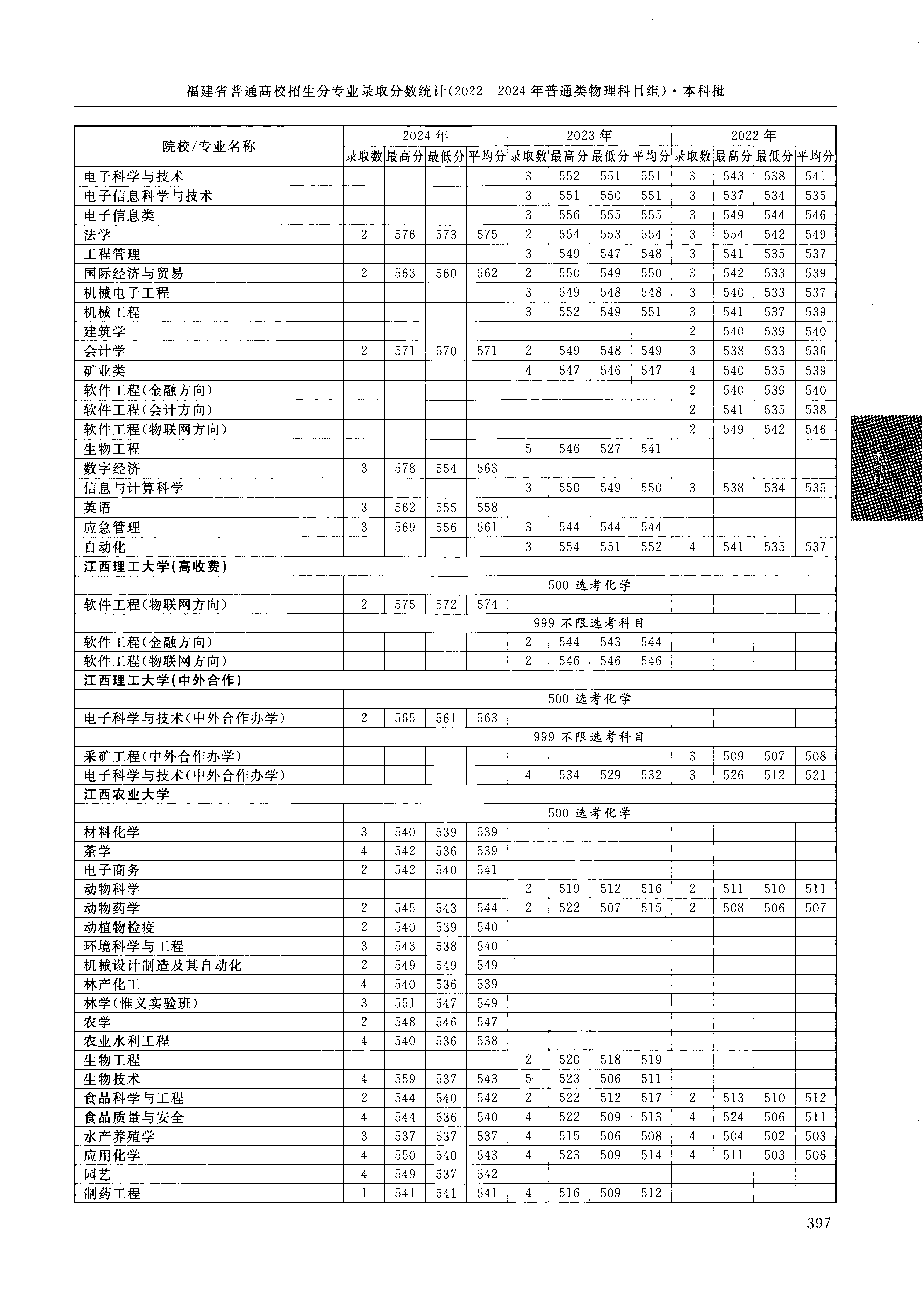2024年福建高考普通类本科批 江西理工大学 的 数字经济 专业录取分数溯源信息