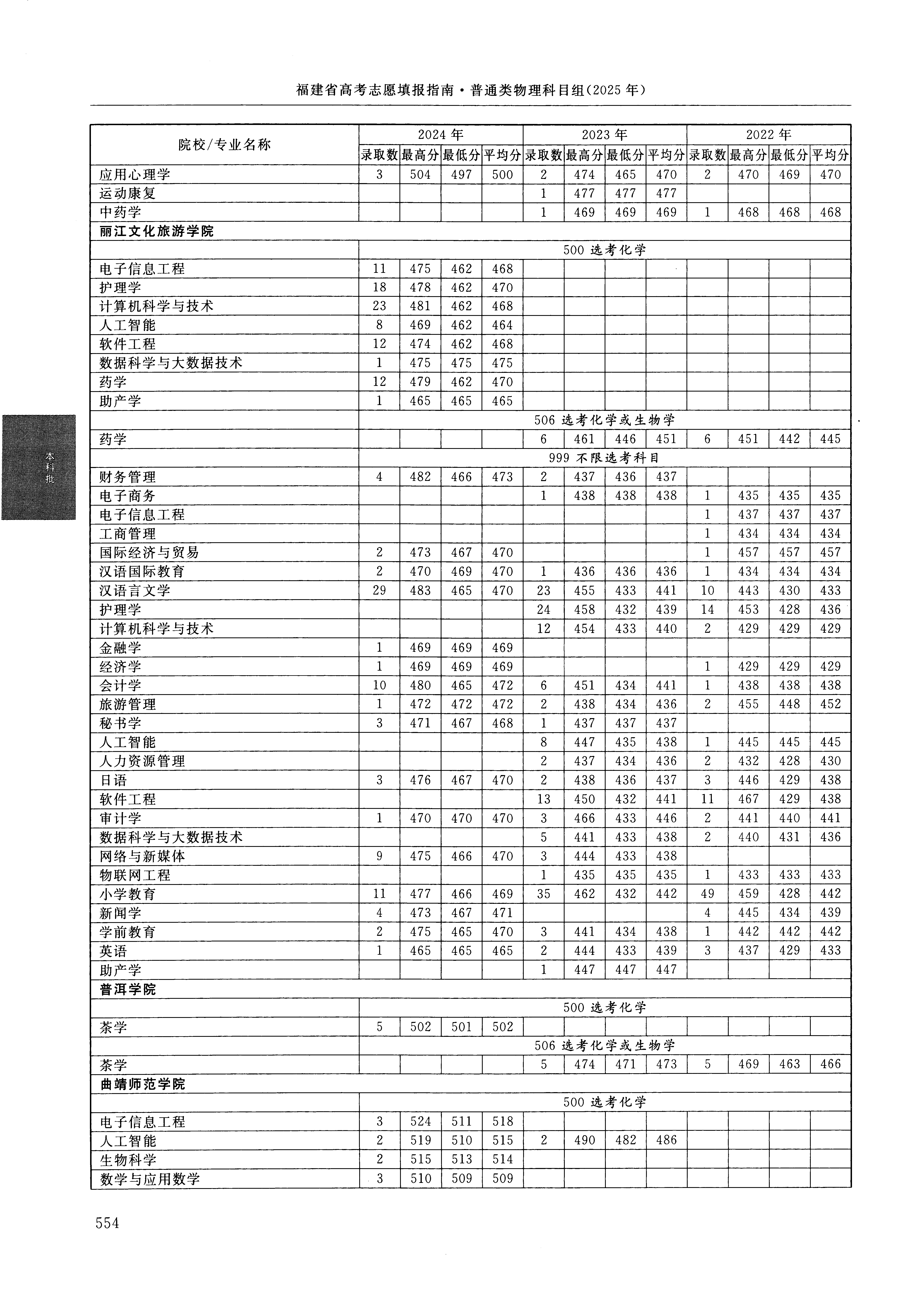 2024年福建高考普通类本科批 丽江文化旅游学院 的 数据科学与大数据技术 专业录取分数溯源信息