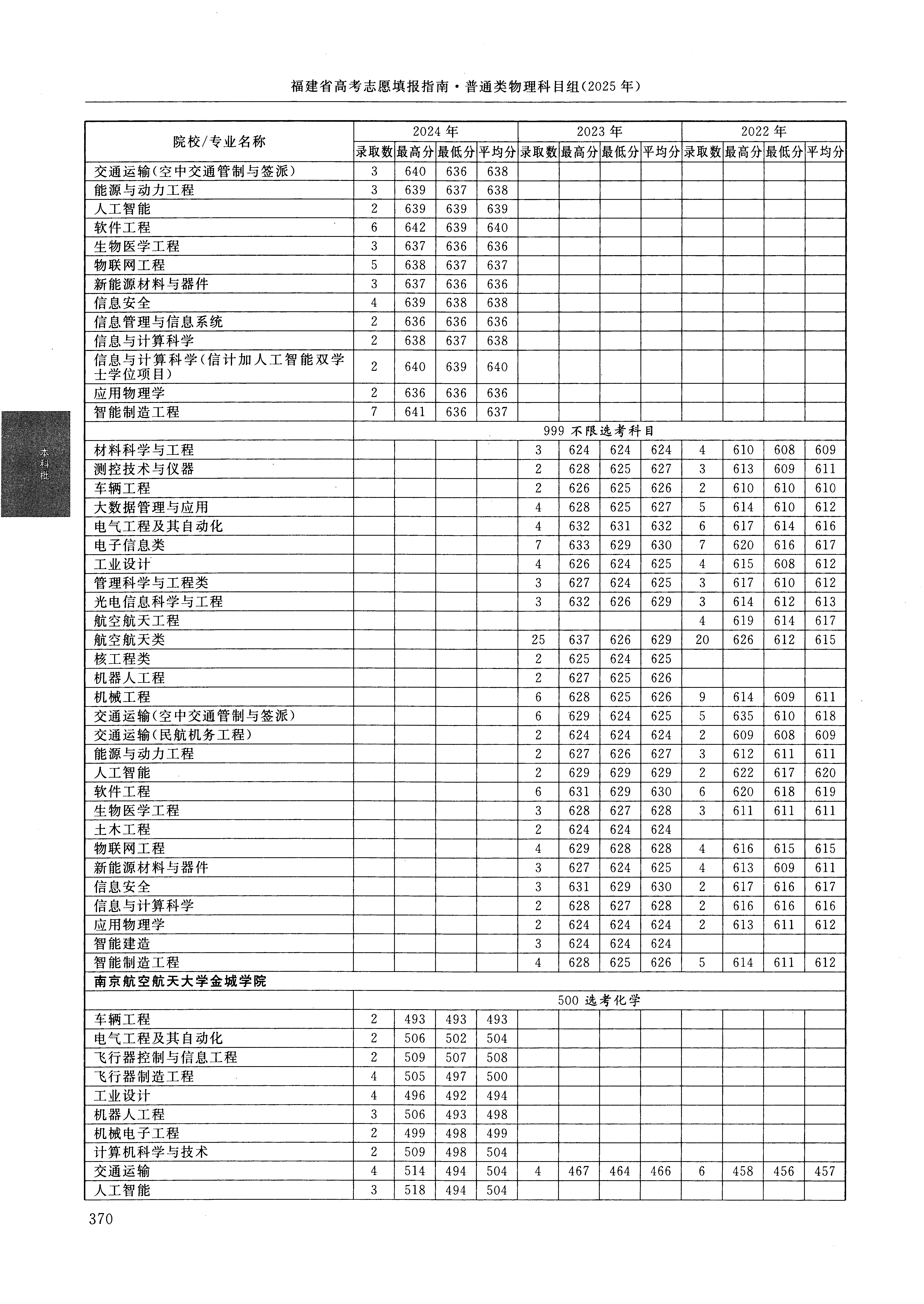 2024年福建高考普通类本科批 南京航空航天大学金城学院 的 信息工程 专业录取分数溯源信息
