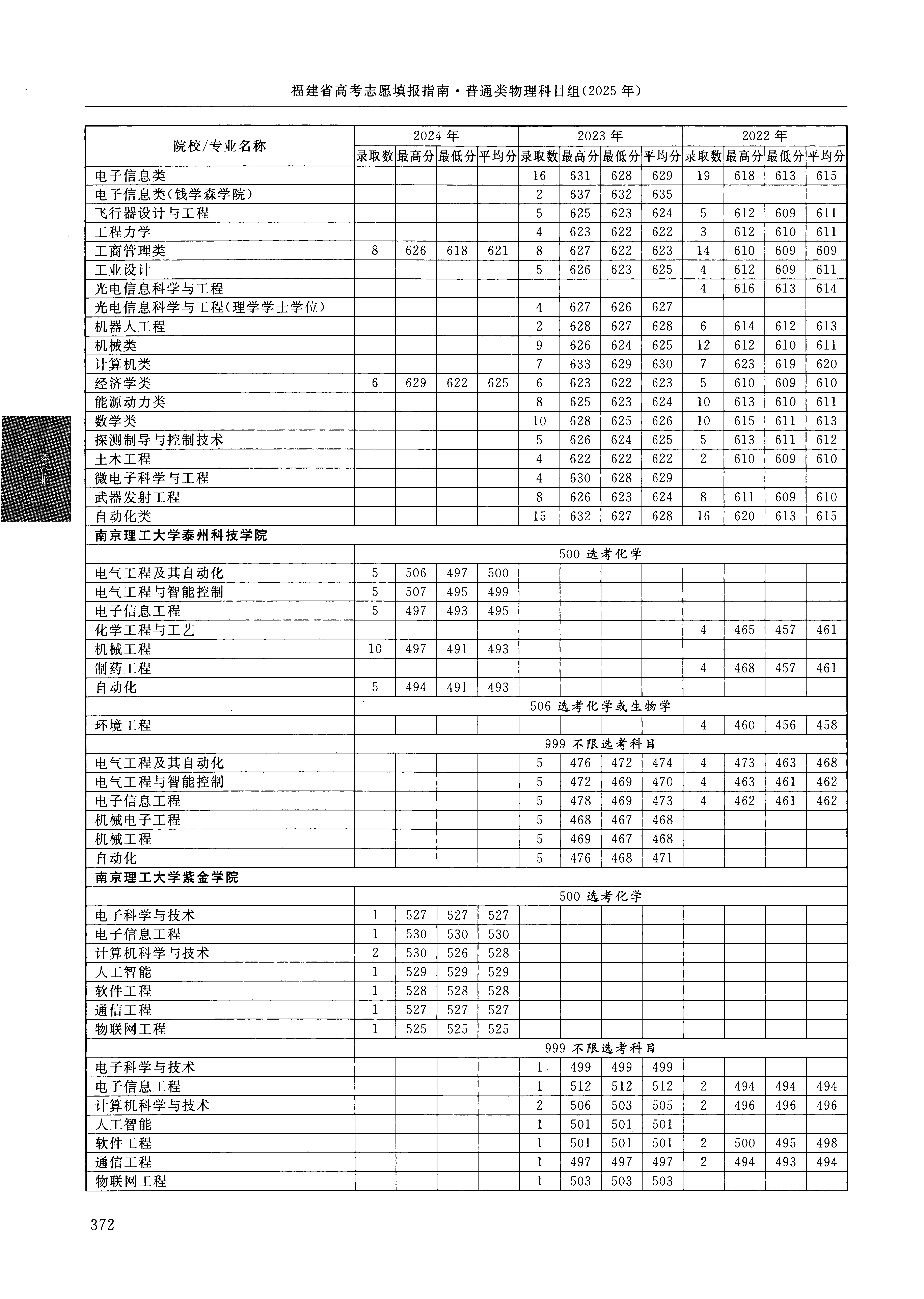 2024年福建高考普通类本科批 南京理工大学紫金学院 的 电子信息工程 专业录取分数溯源信息