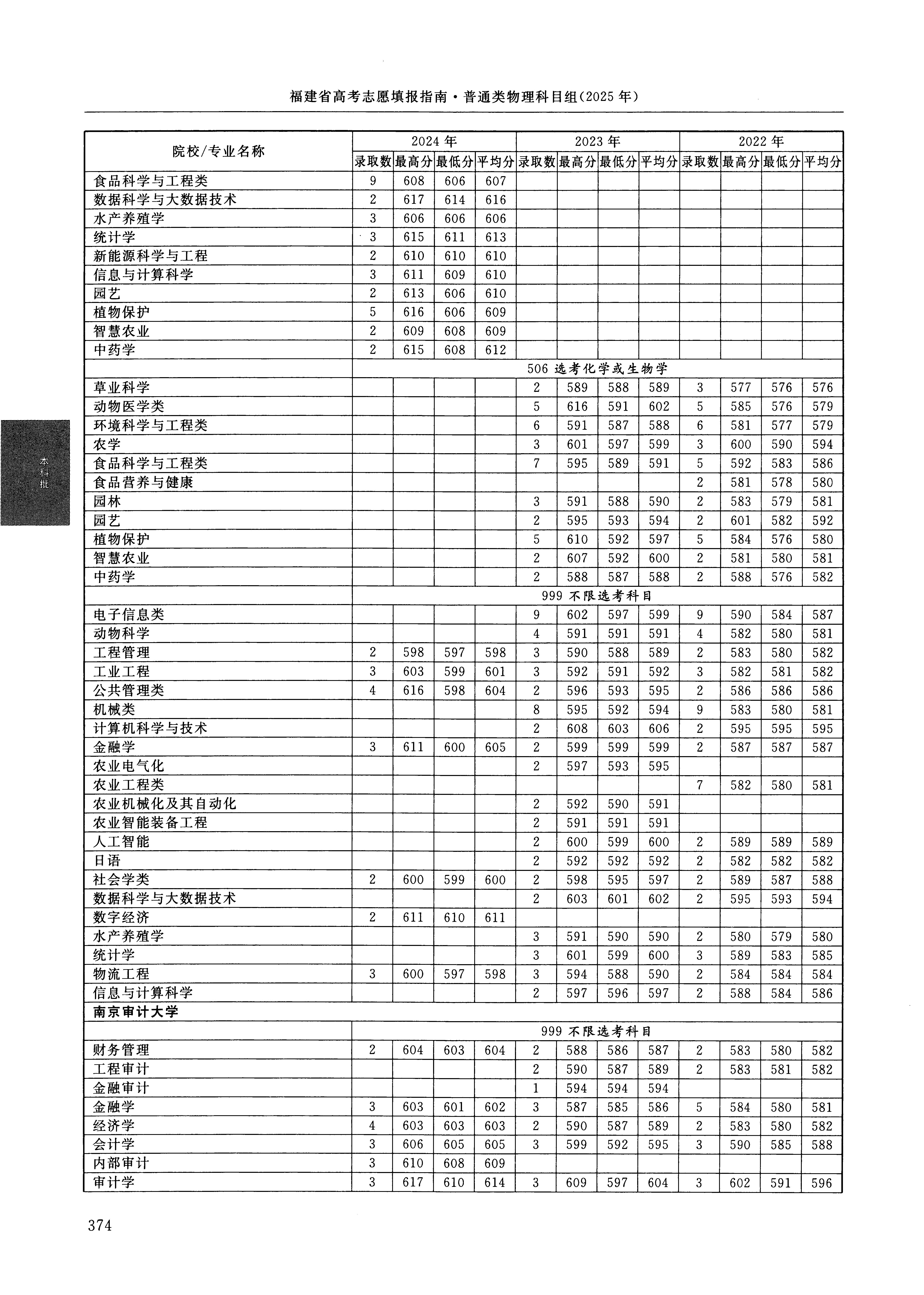 | 2987 | 南京审计大学 | 005 | 审计学 | 610 | 12272 | 本科 | 物理 ,再选: 不限 | 1 |
