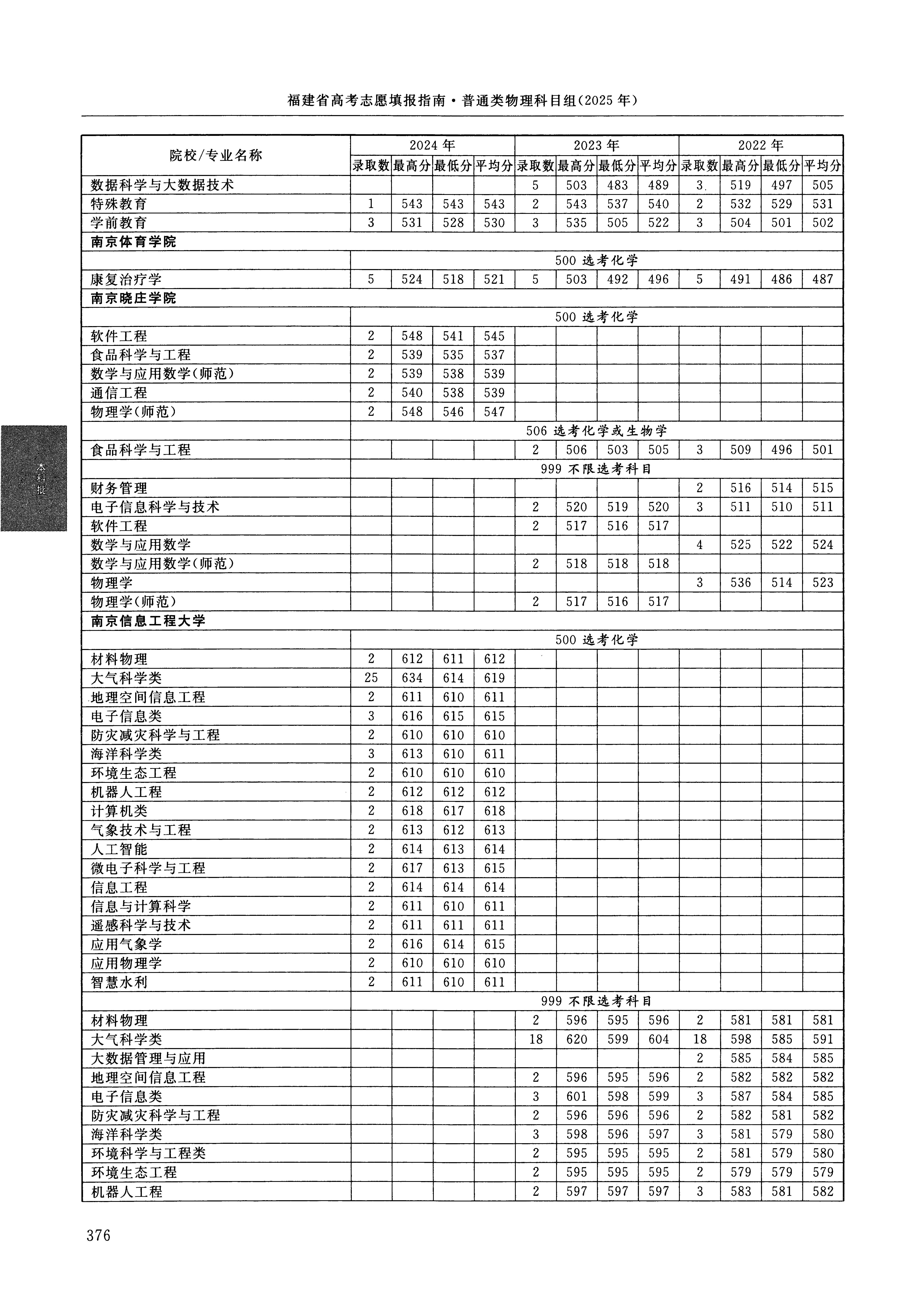 2024年福建高考普通类本科批 南京信息工程大学 的 应用气象学 专业录取分数溯源信息