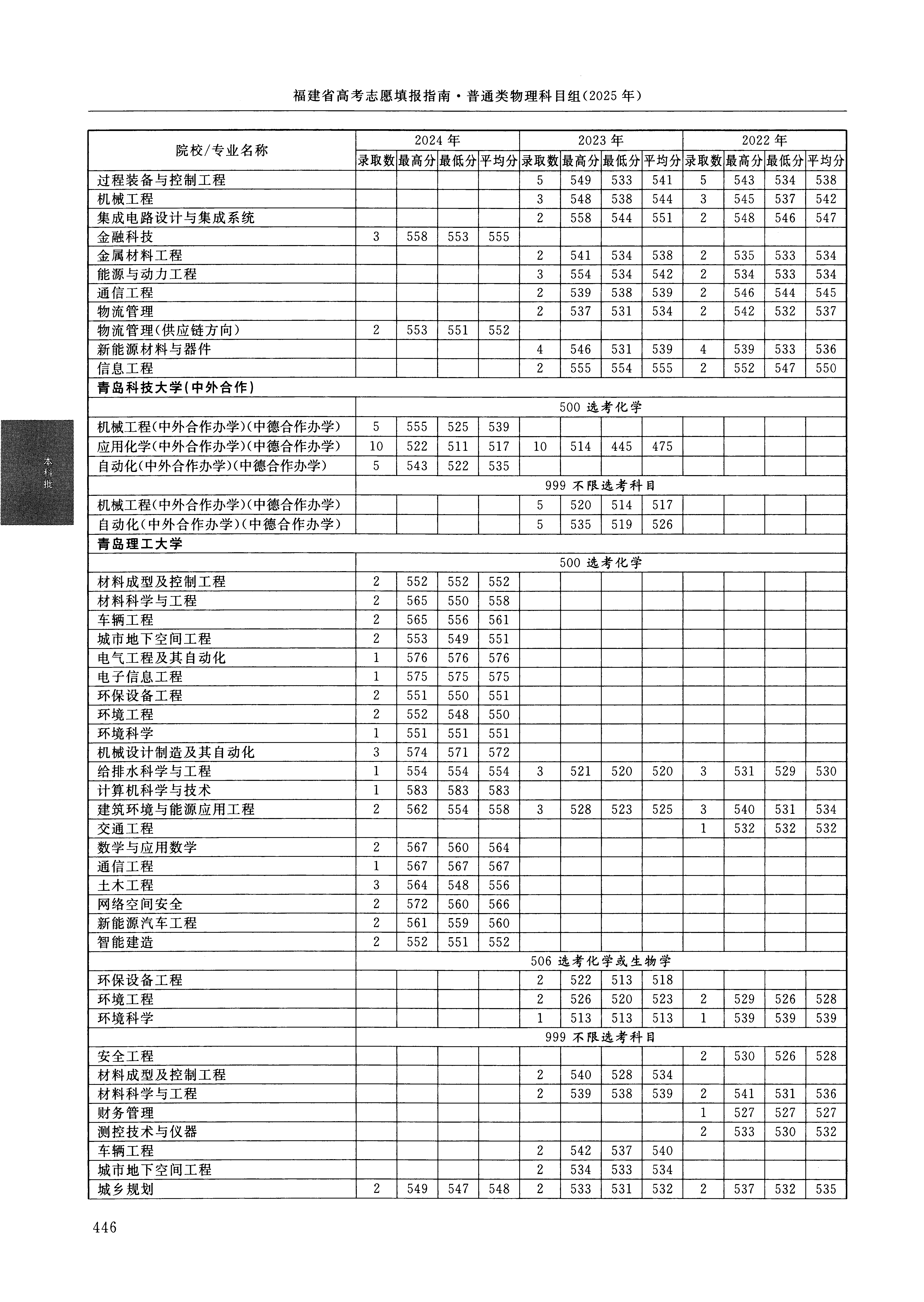 2024年福建高考普通类本科批 青岛科技大学 的 自动化 专业录取分数溯源信息