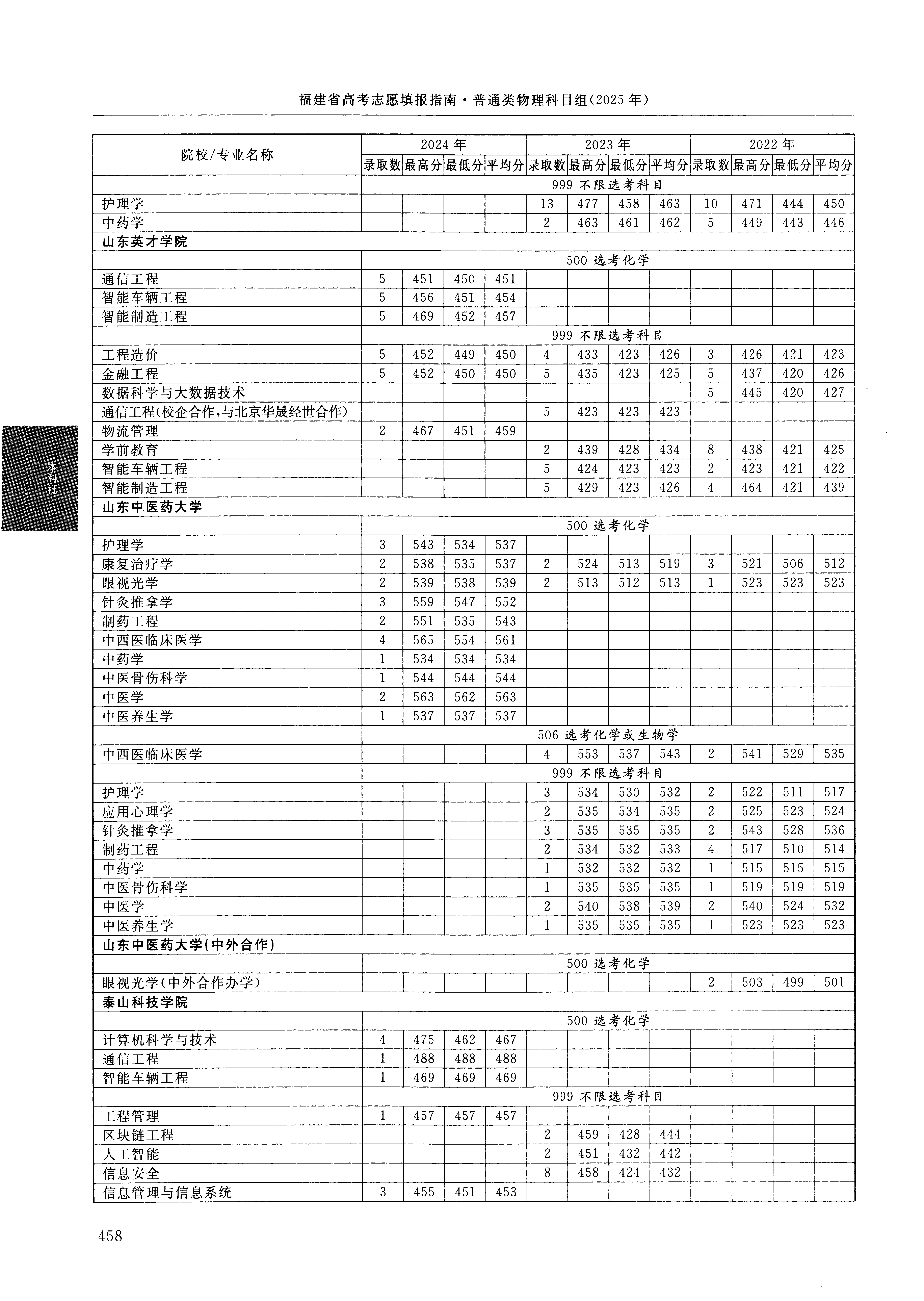 2024年福建高考普通类本科批 山东中医药大学 的 中医骨伤科学 专业录取分数溯源信息