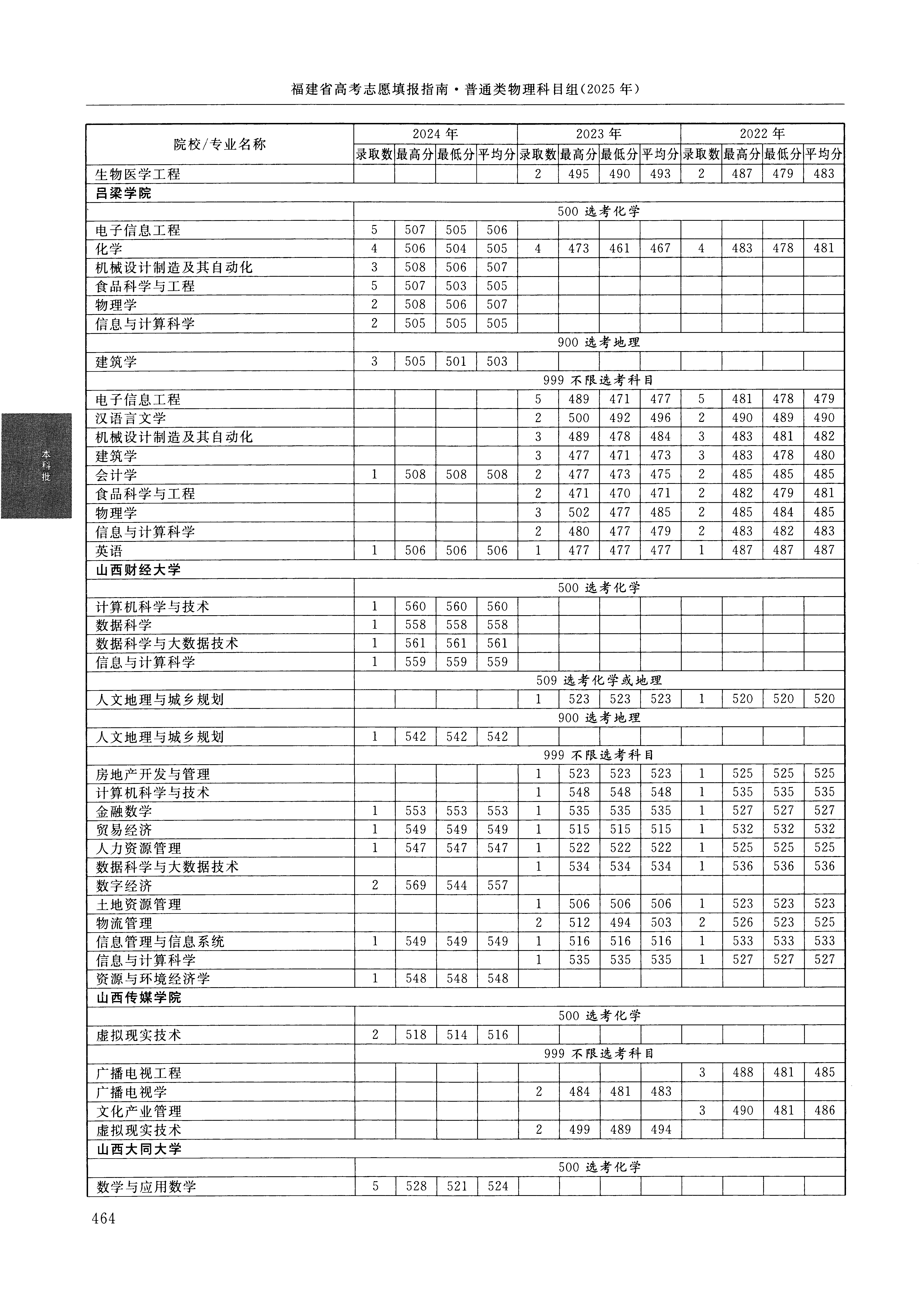 | 3095 | 山西传媒学院 | 001 | 虚拟现实技术 | 514 | 64612 | 本科 | 物理 ,再选: 化学 | 1 |