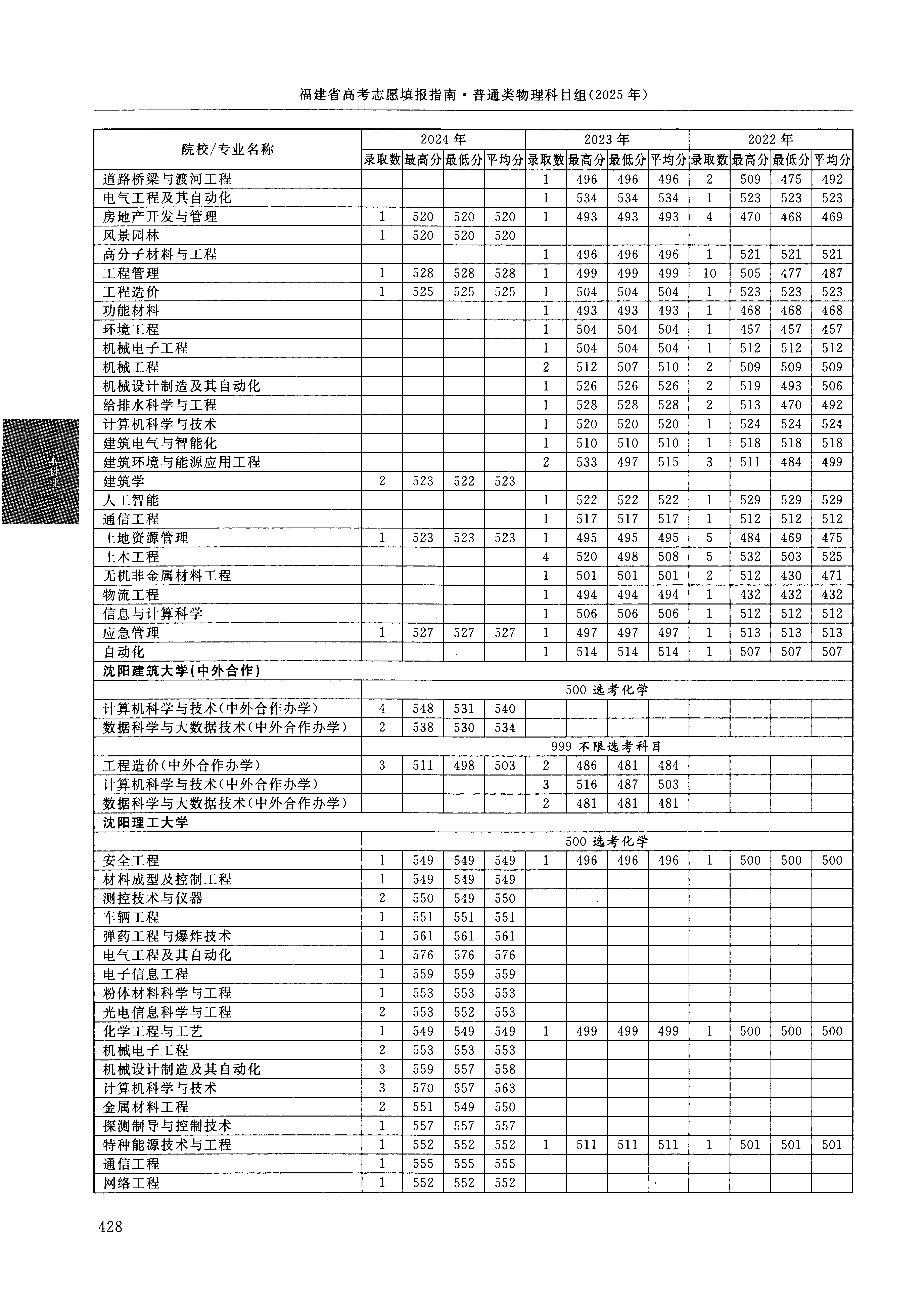 2024年福建高考普通类本科批 沈阳建筑大学 的 数据科学与大数据技术 专业录取分数溯源信息