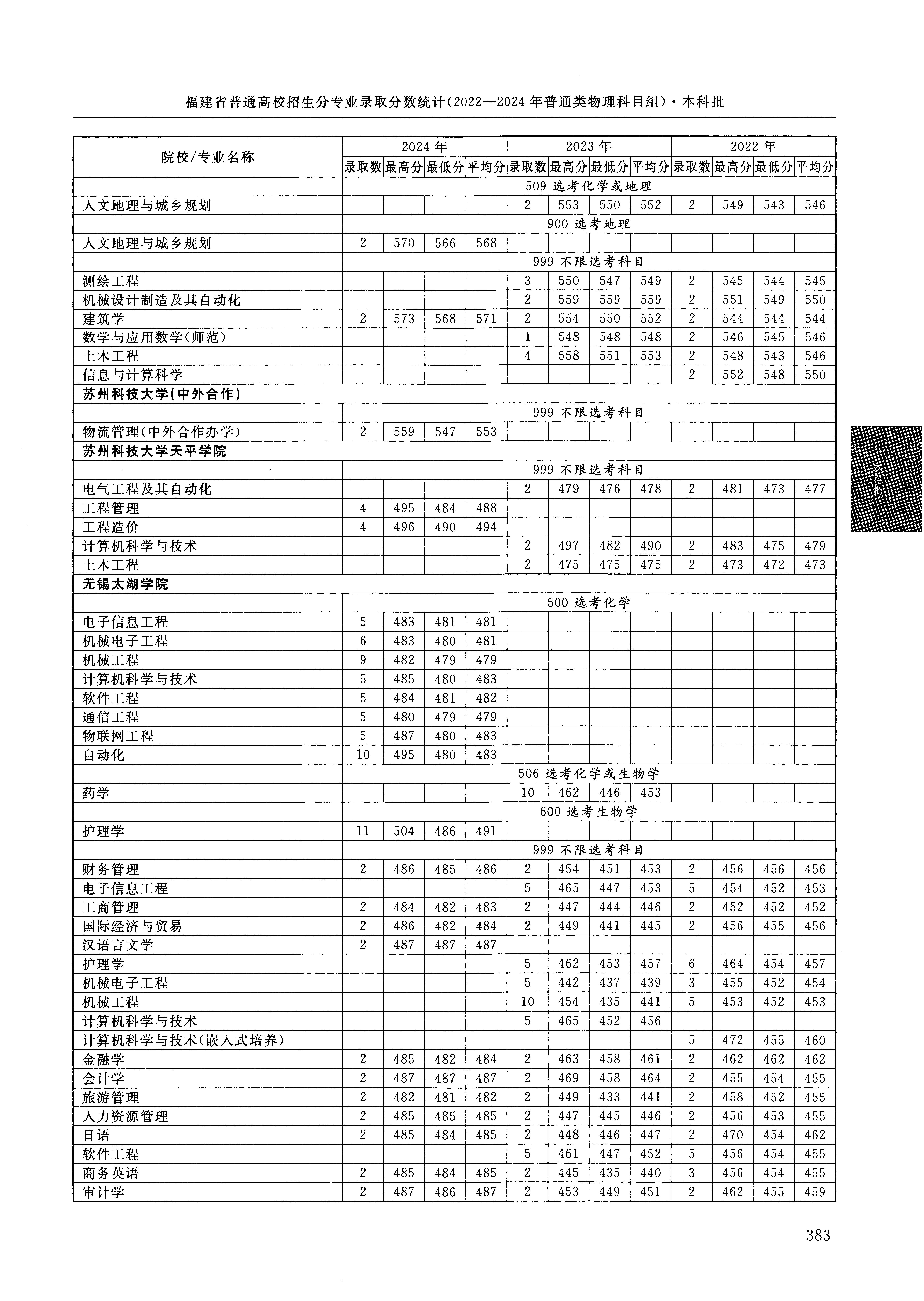 2024年福建高考普通类本科批 苏州科技大学天平学院 的 工程管理 专业录取分数溯源信息