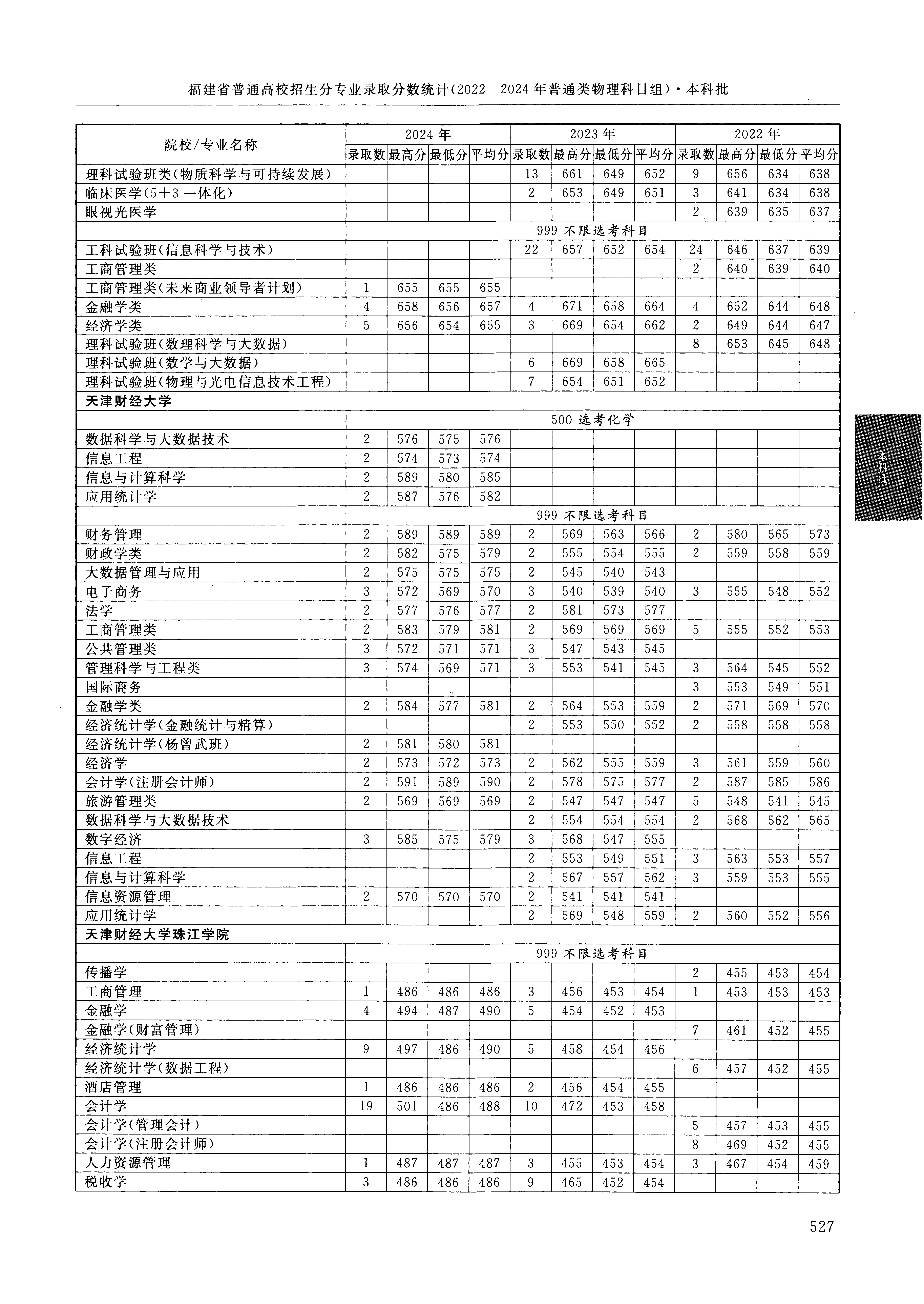 | 3235 | 天津财经大学珠江学院 | 005 | 工商管理 | 486 | 84575 | 本科 | 物理 ,再选: 不限 | 1 |