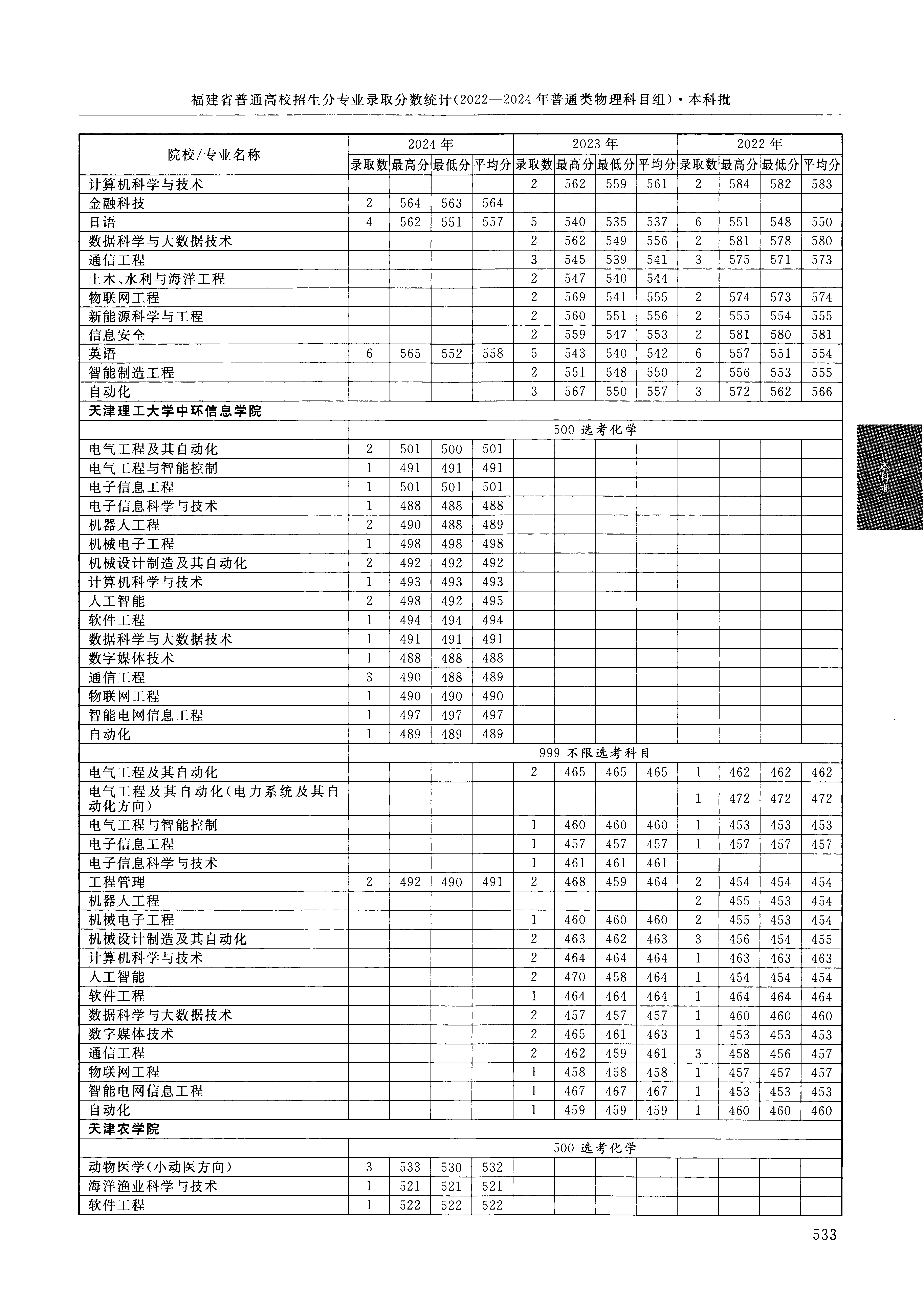 2024年福建高考普通类本科批 天津理工大学 的 英语 专业录取分数溯源信息