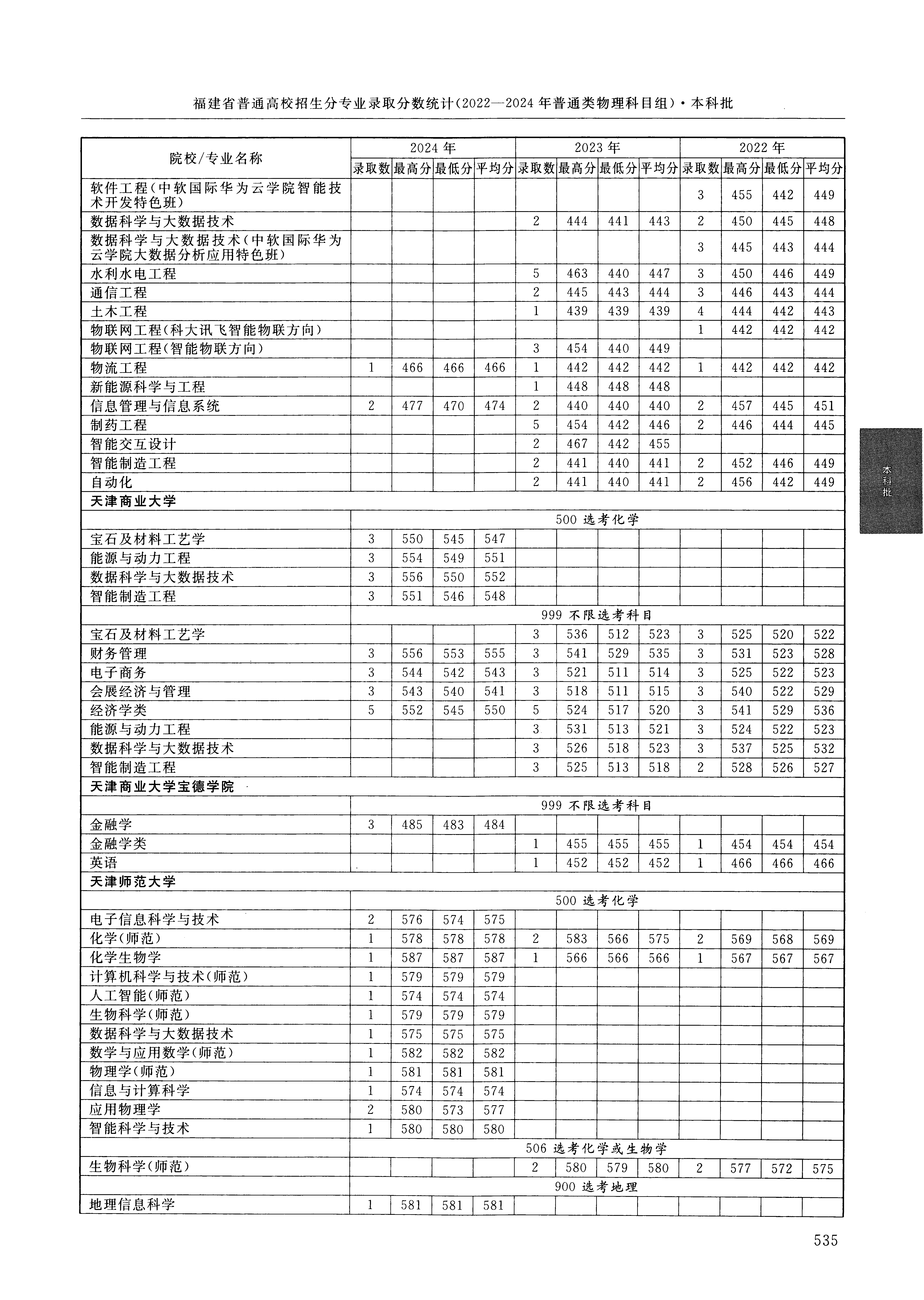 2024年福建高考普通类本科批 天津师范大学 的 学前教育 专业录取分数溯源信息