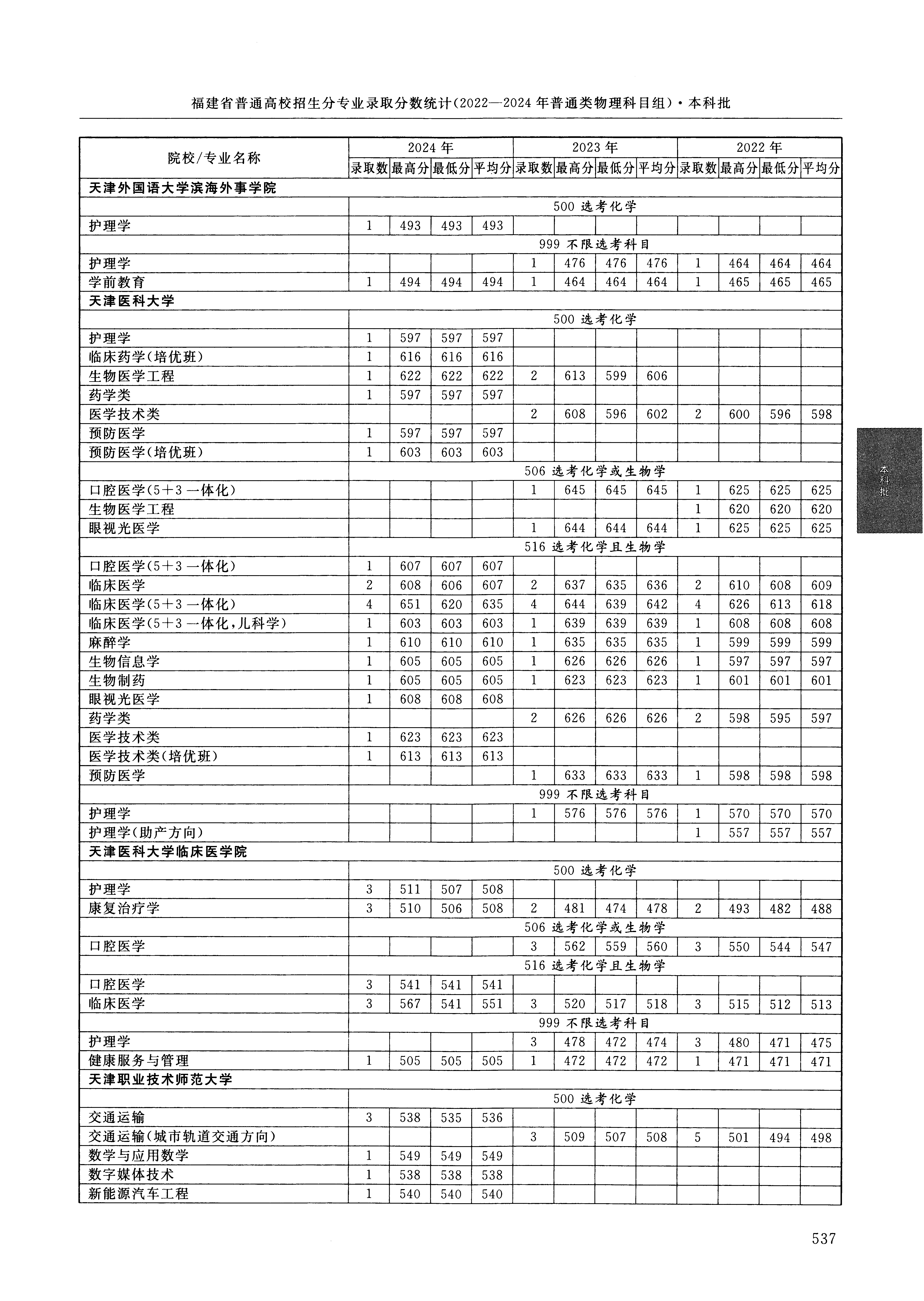 2024年福建高考普通类本科批 天津医科大学 的 预防医学 专业录取分数溯源信息