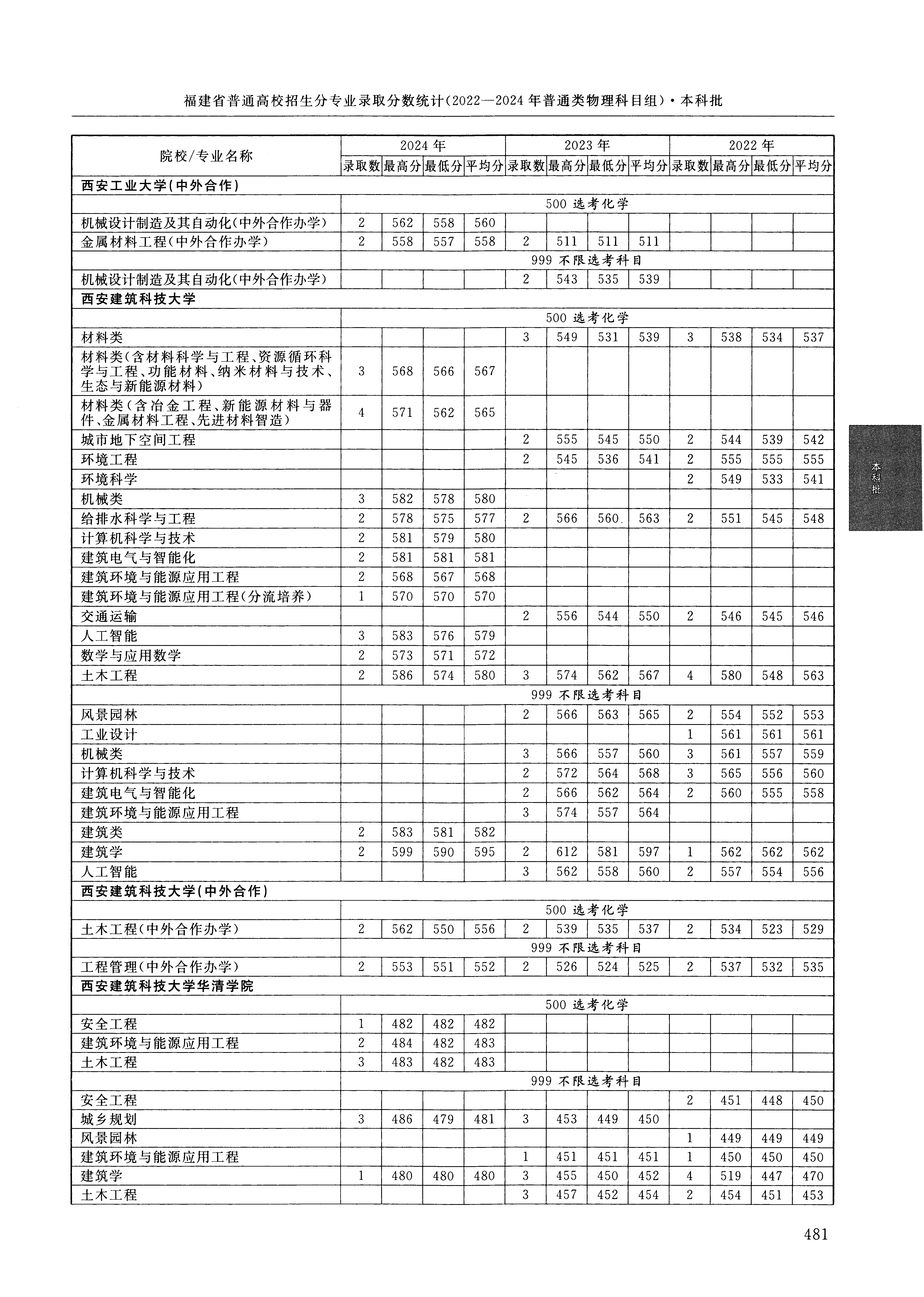 2024年福建高考普通类本科批 西安建筑科技大学 的 材料类 专业录取分数溯源信息