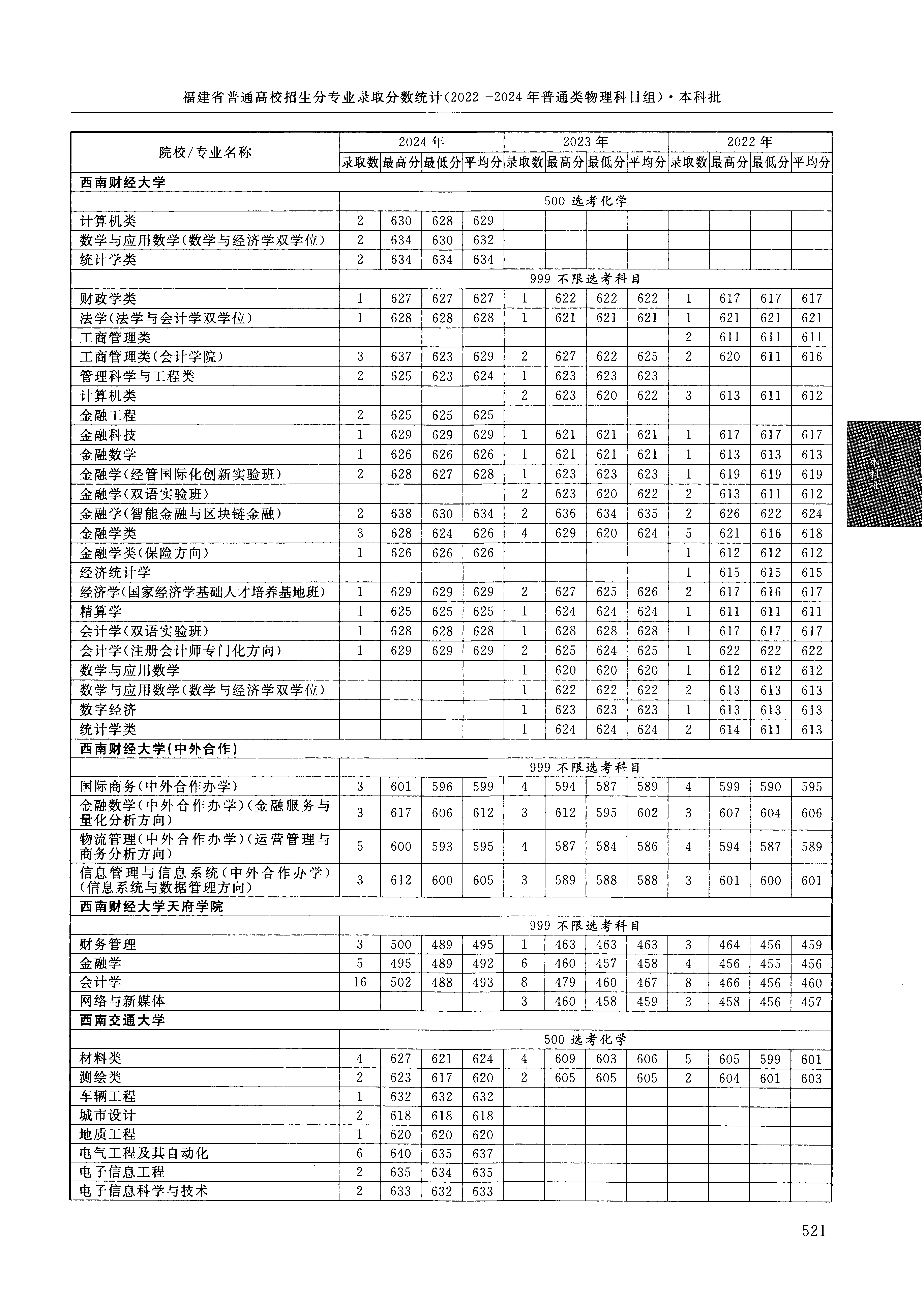 2024年福建高考普通类本科批 西南财经大学 的 会计学 专业录取分数溯源信息