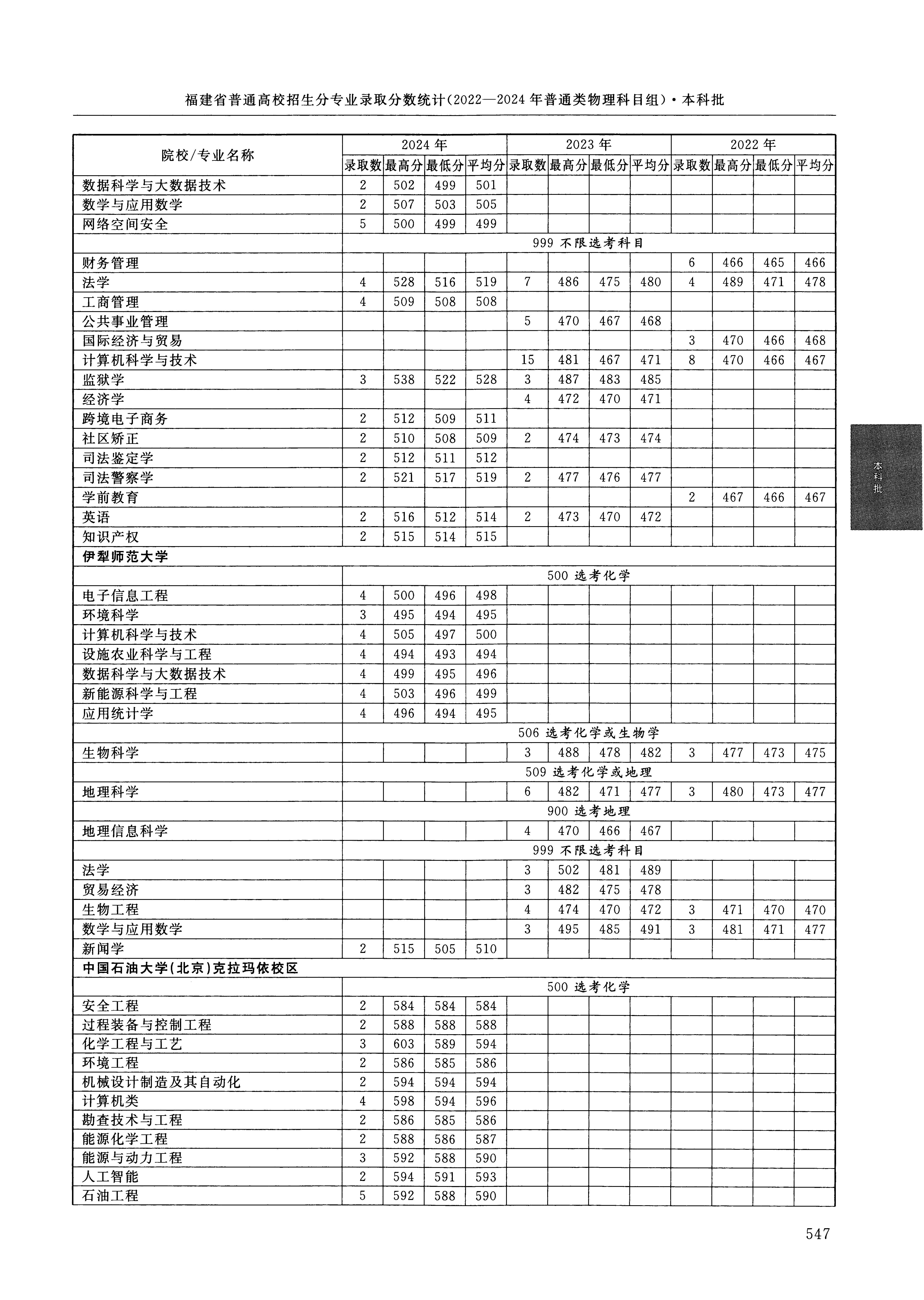 2024年福建高考普通类本科批 伊犁师范大学 的 应用统计学 专业录取分数溯源信息