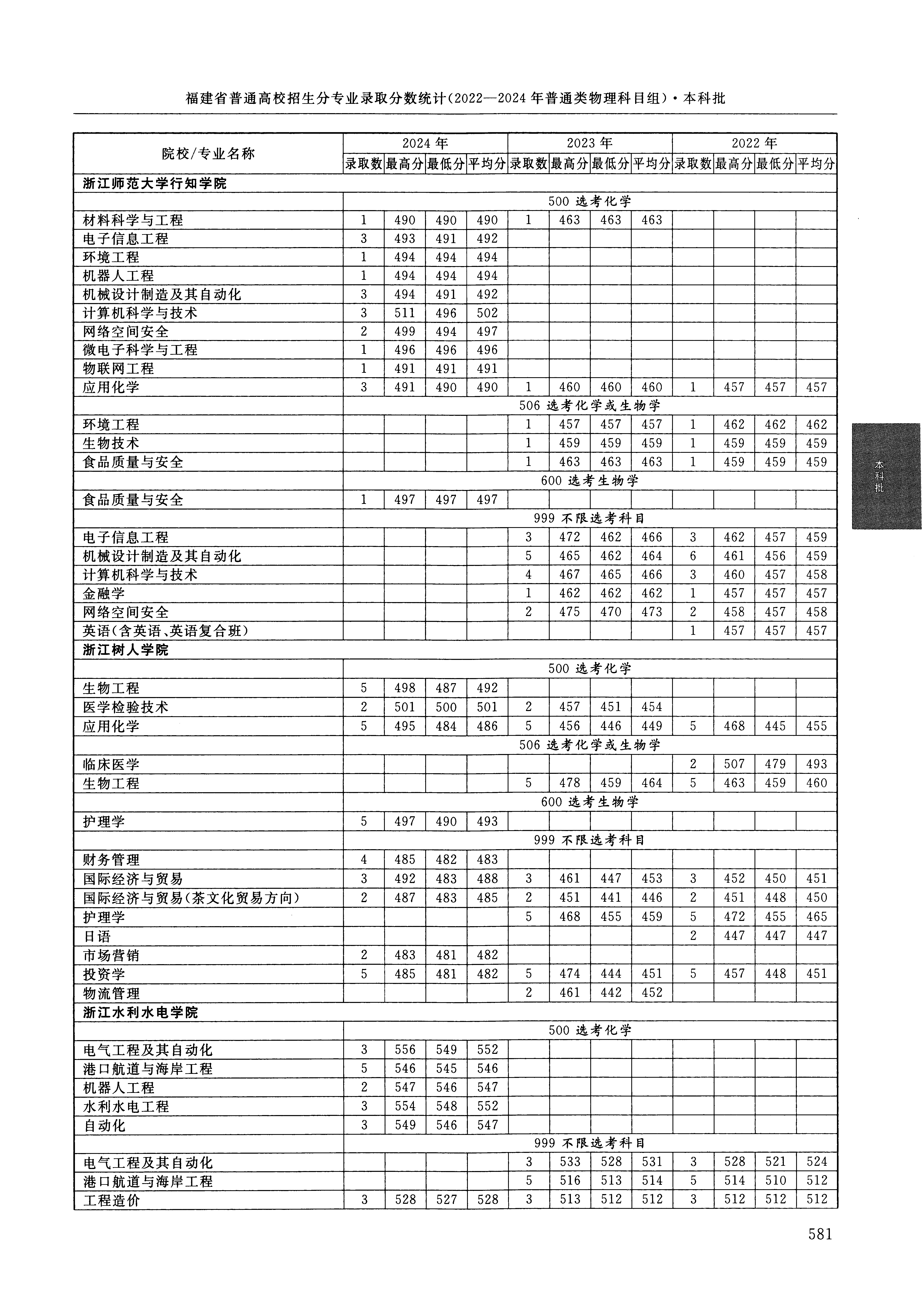 2024年福建高考普通类本科批 浙江树人学院 的 财务管理 专业录取分数溯源信息