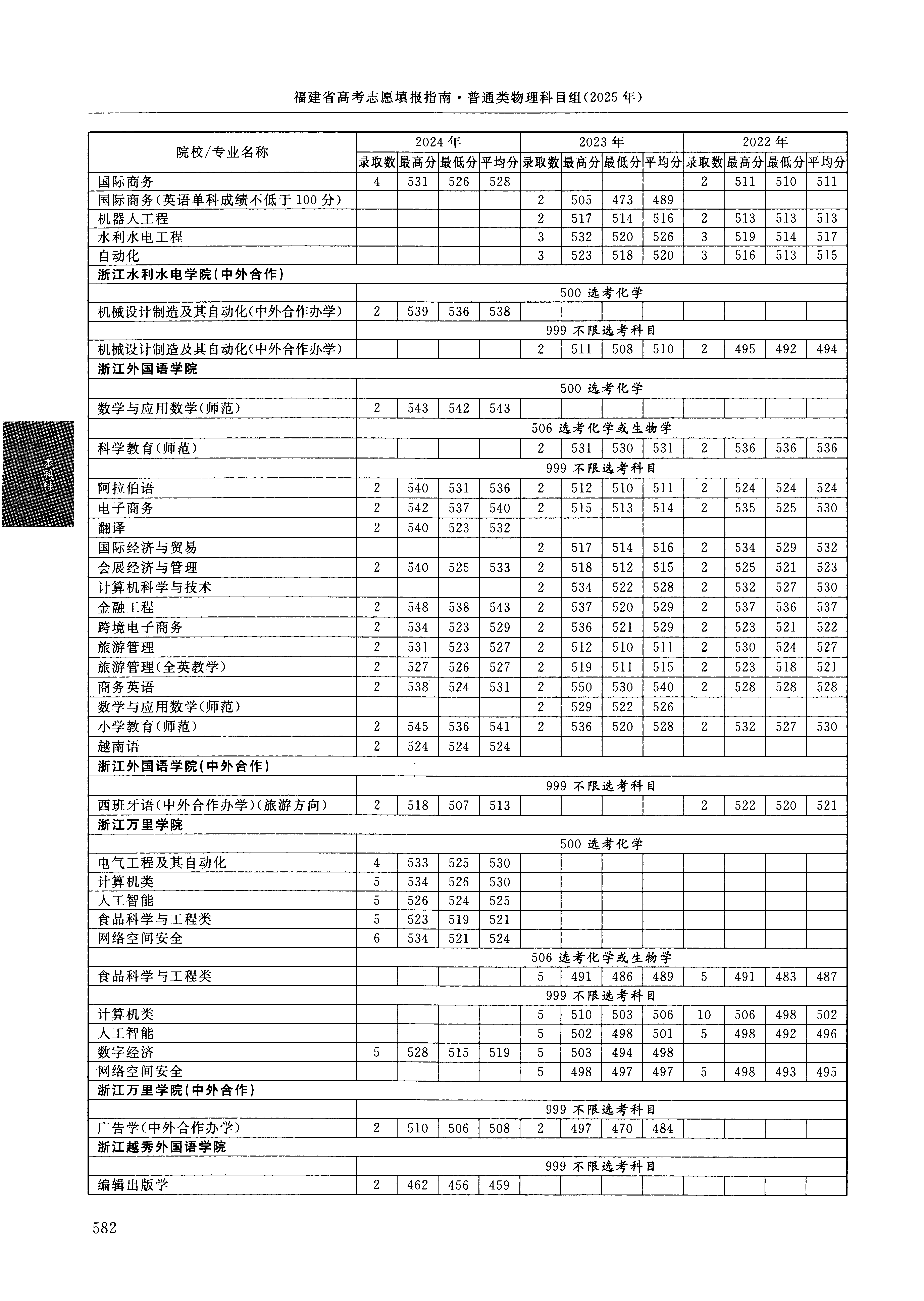 2024年福建高考普通类本科批 浙江万里学院 的 网络空间安全 专业录取分数溯源信息