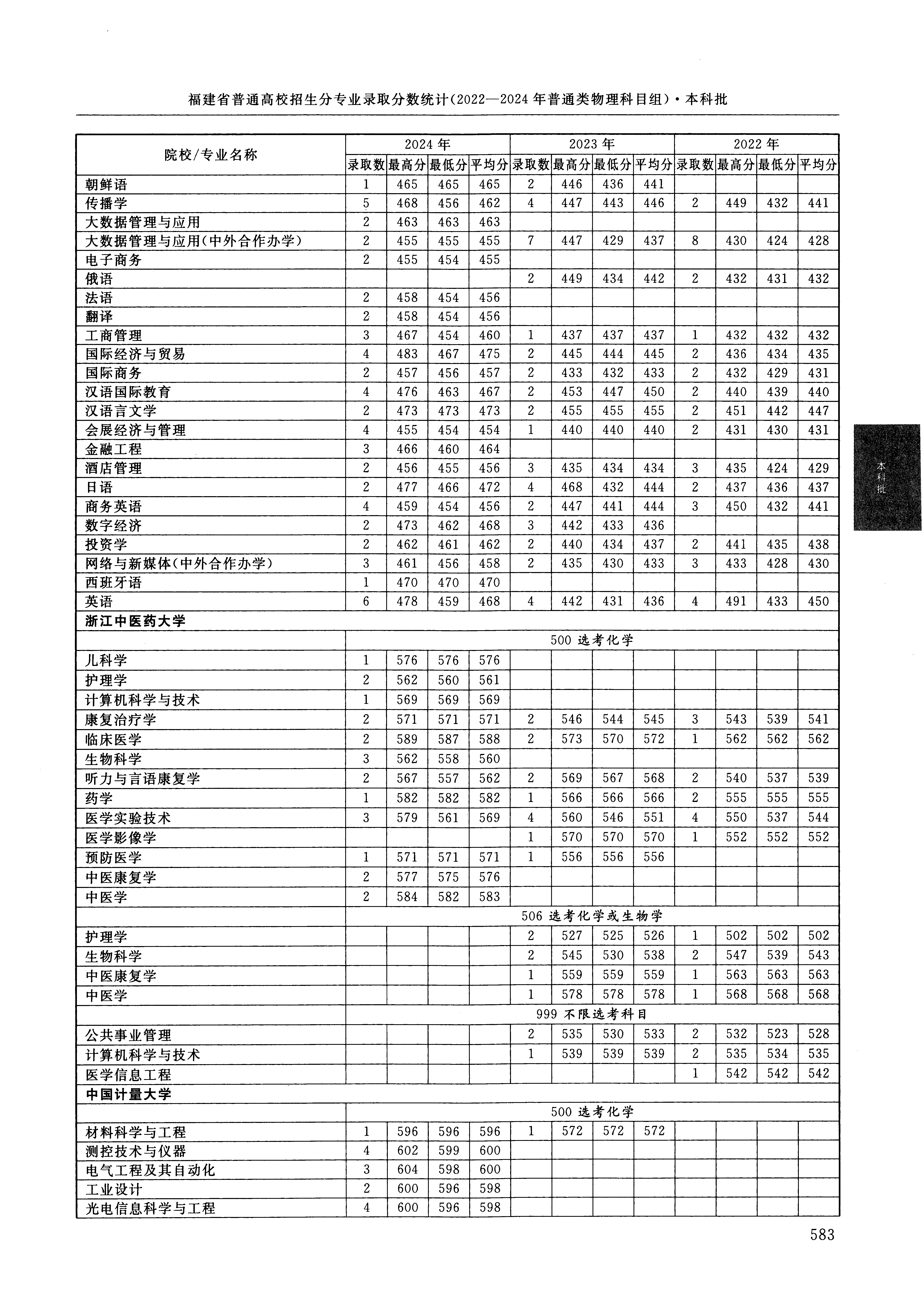 2024年福建高考普通类本科批 浙江中医药大学 的 预防医学 专业录取分数溯源信息