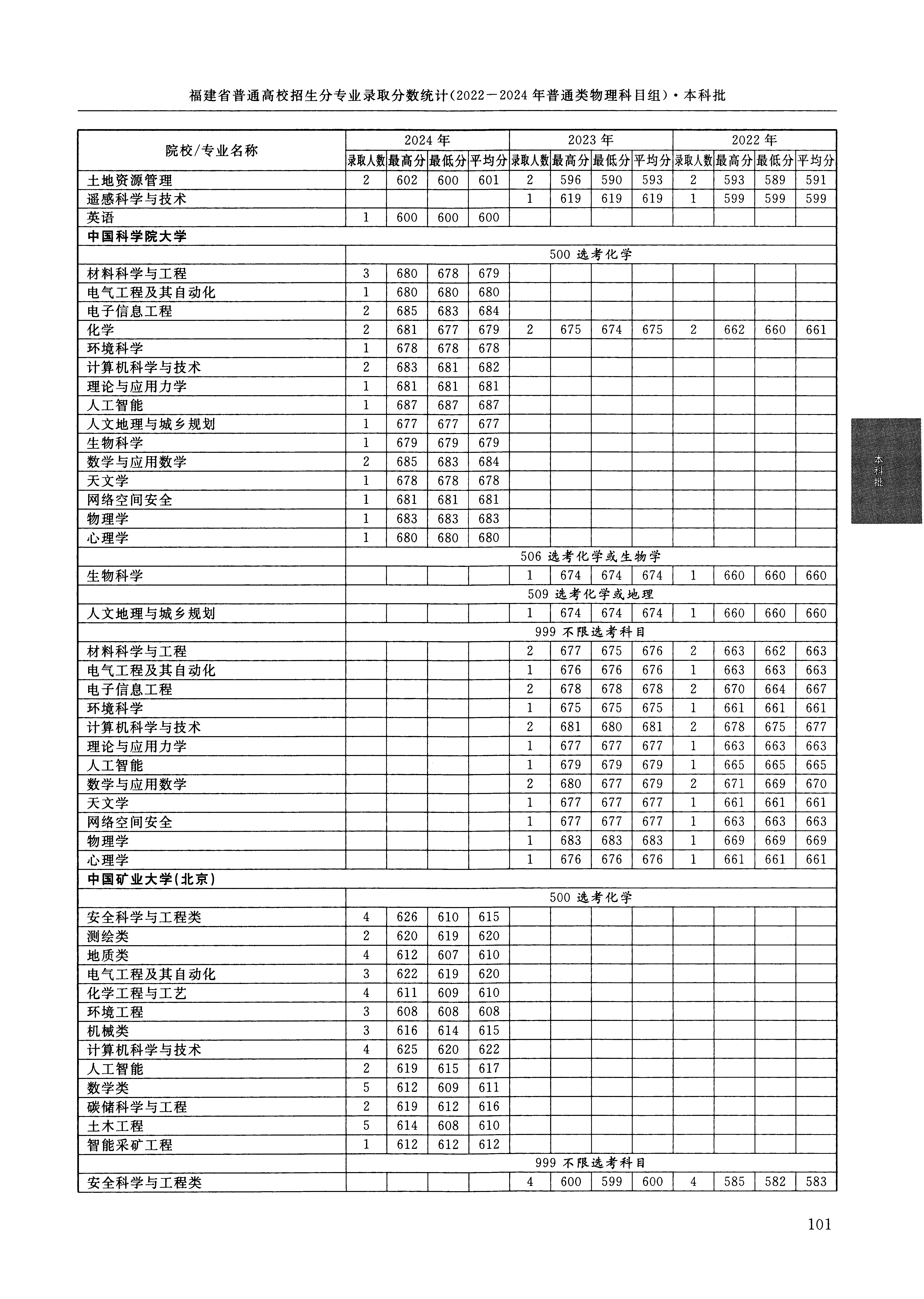 2024年福建高考普通类本科批 中国地质大学(北京) 的 英语 专业录取分数溯源信息